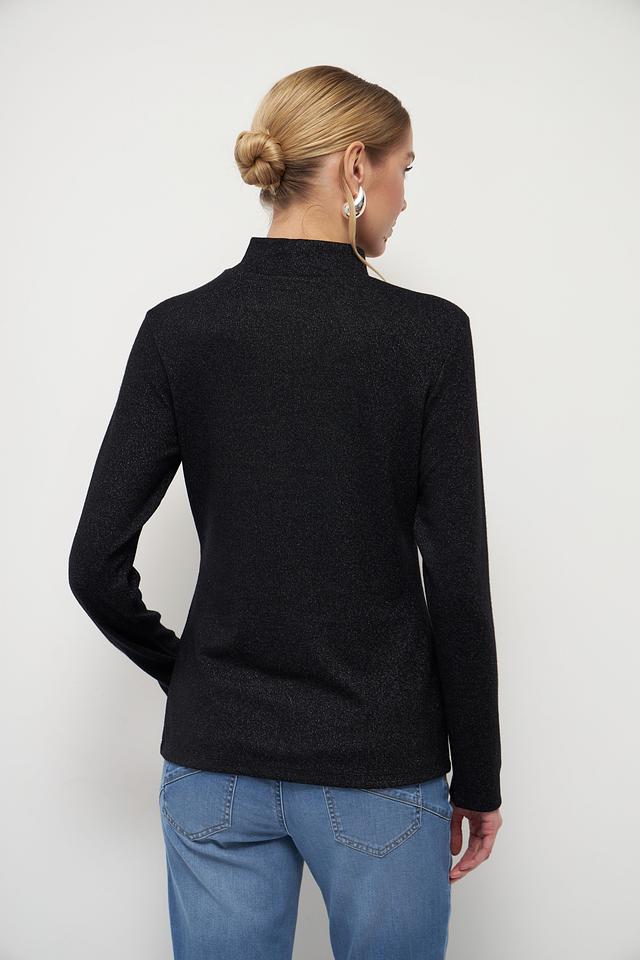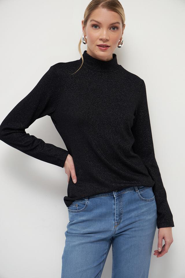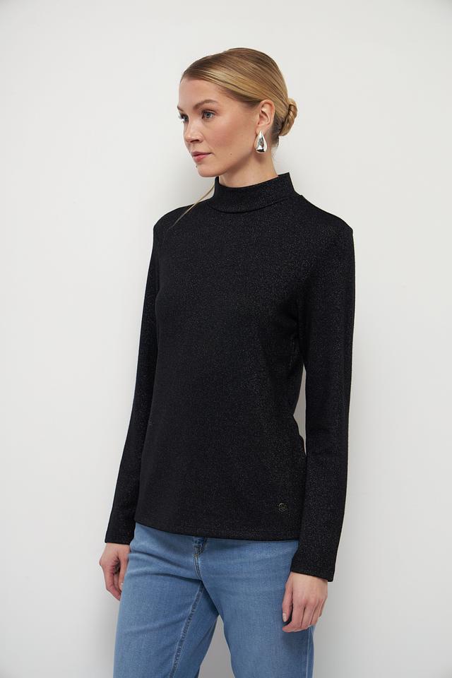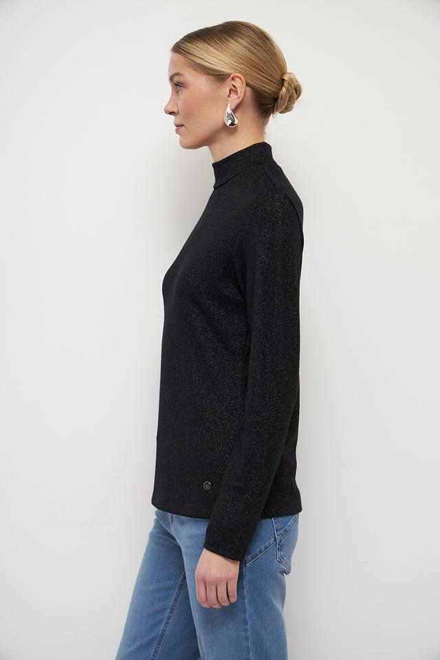 Черная водолазка Lecomte с добавлением металлизированной нити придаст вашему образу элегантность и сияние. Изготовлена из мягкой вискозы с небольшим добавлением эластана для комфортной посадки. Состав: вискоза 70%, метализ.нить 25%, эластан 5%