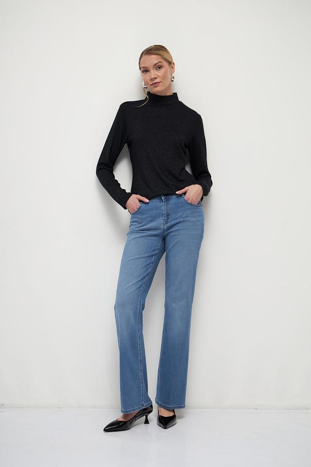 Водолазка имеет классический крой с длинными рукавами и облегающей посадкой. Высокий воротник-стойка подчеркивает линию шеи и создает элегантный силуэт. Благодаря составу, включающему эластан, водолазка хорошо тянется и обеспечивает комфорт при носке.