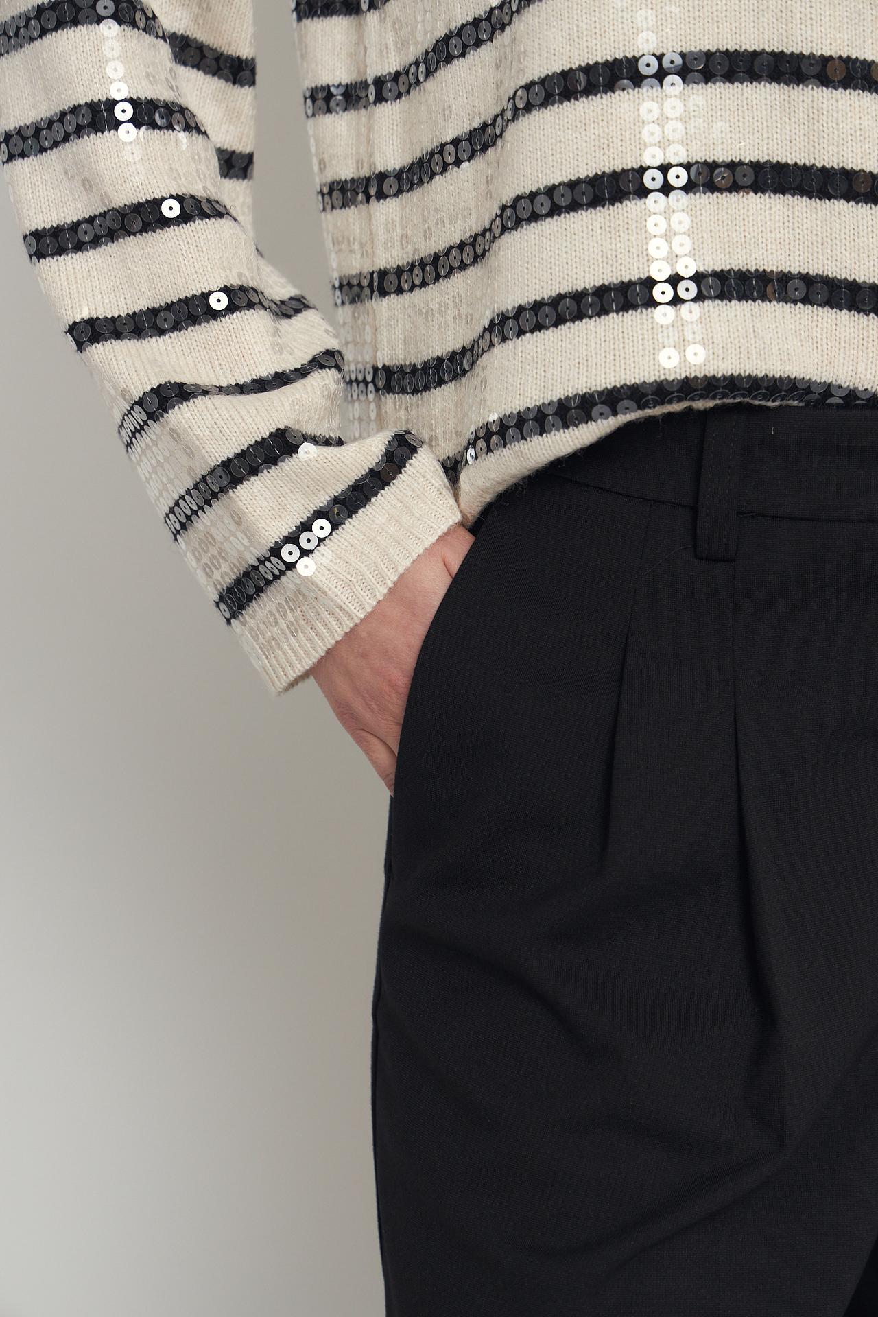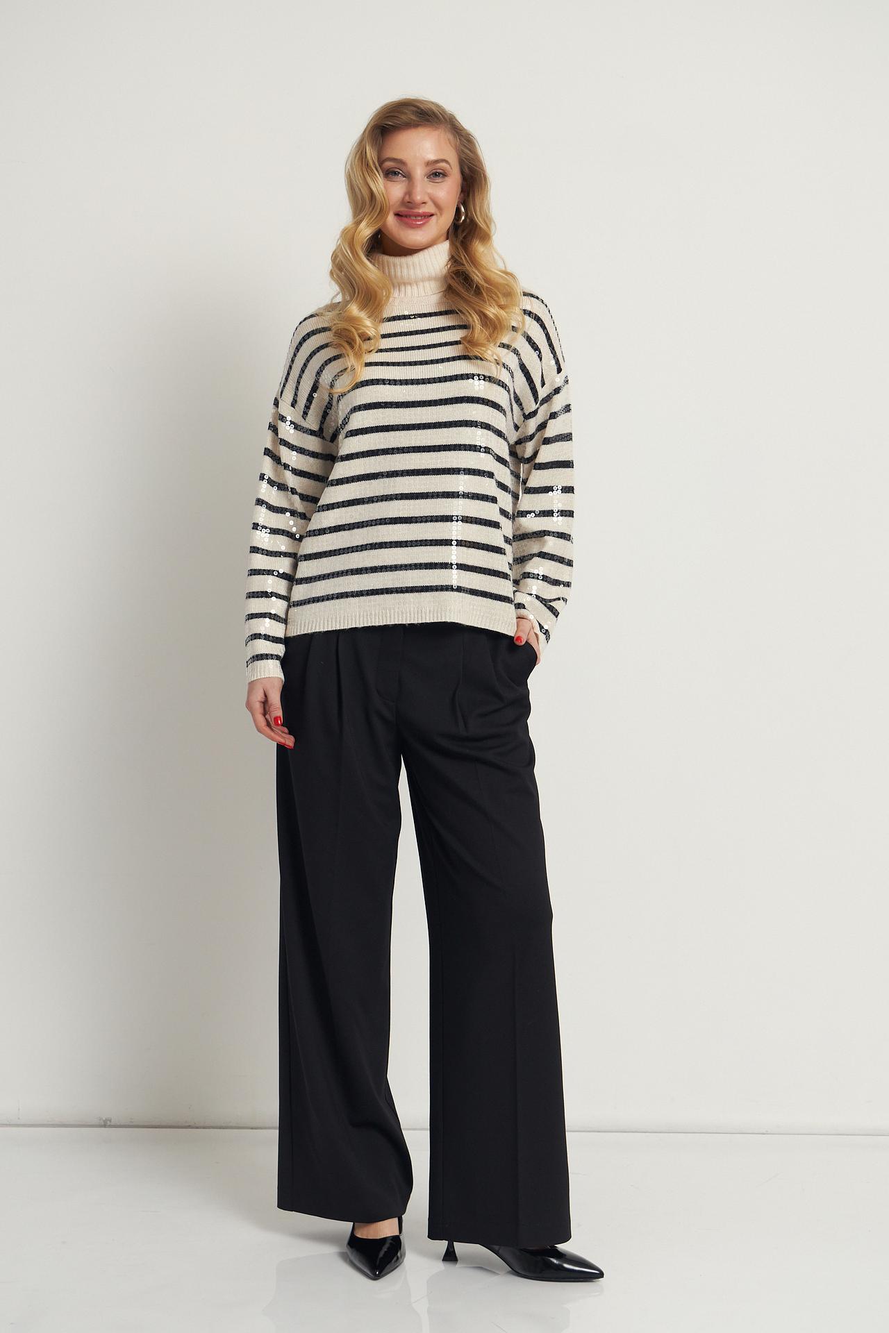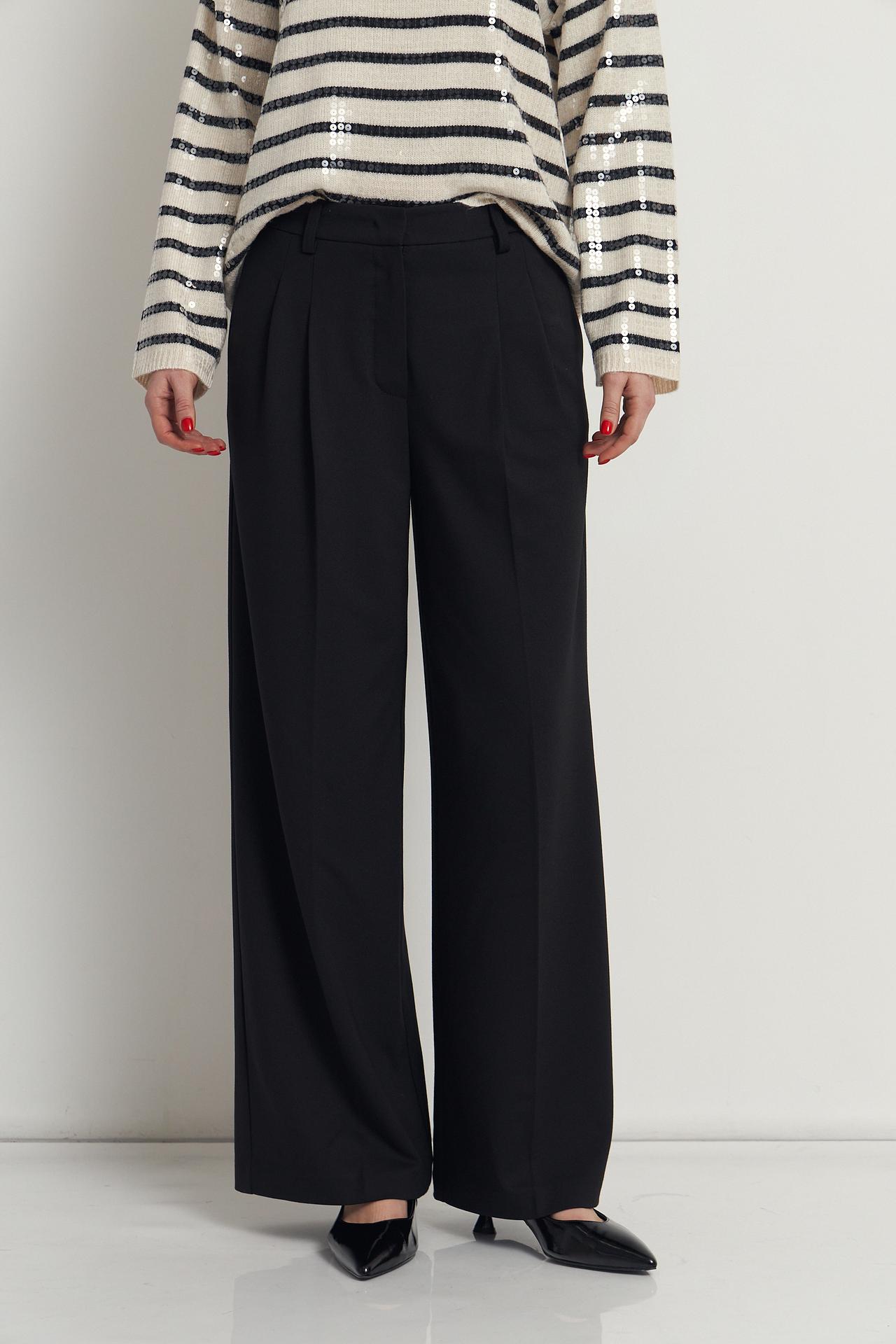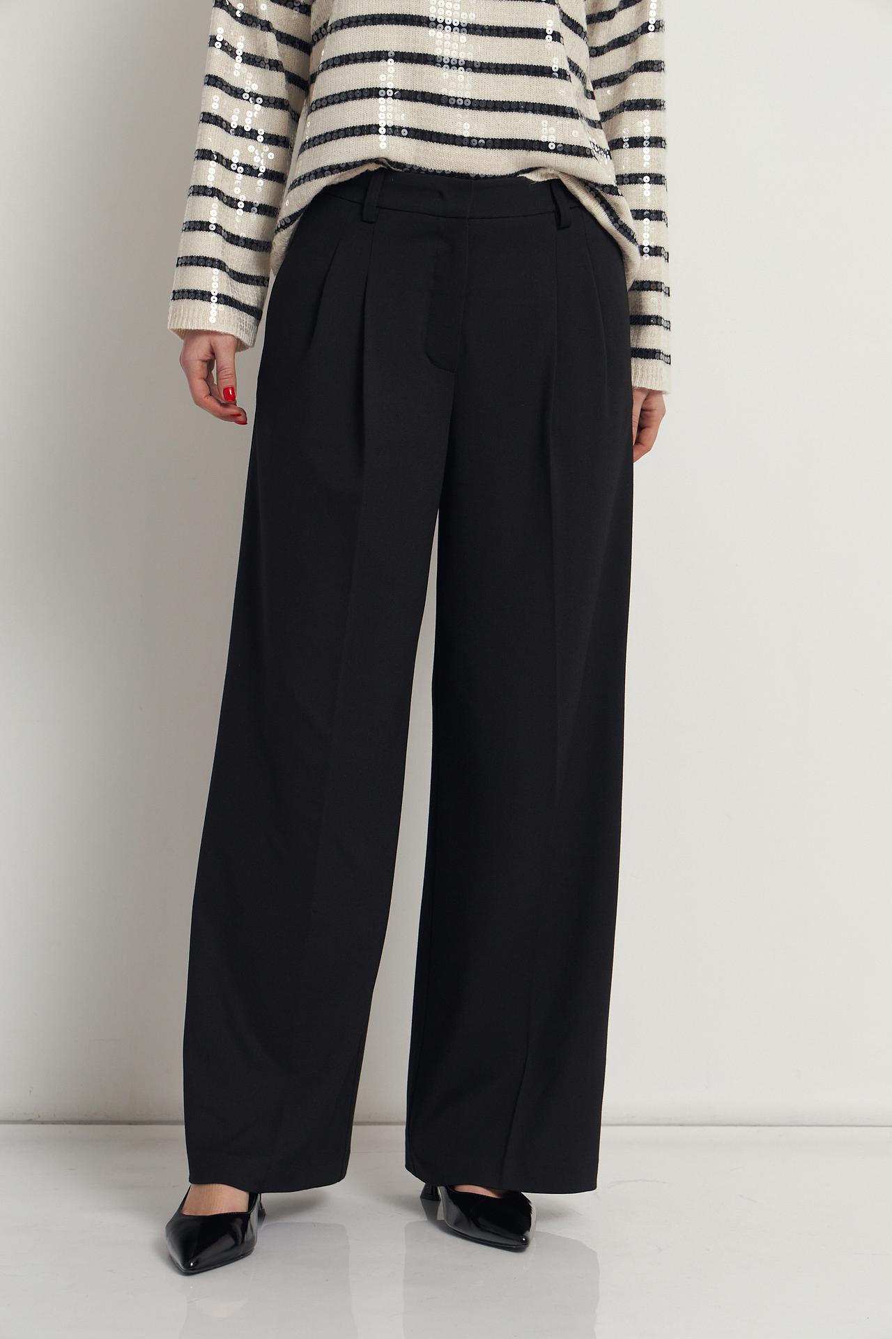 - Универсальность: Черные брюки — основа любого гардероба. Они легко сочетаются с различными блузками, топами и жакетами, позволяя создавать множество разнообразных комплектов.