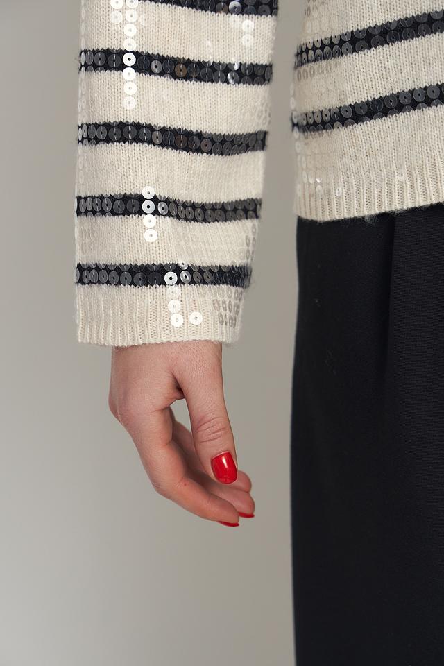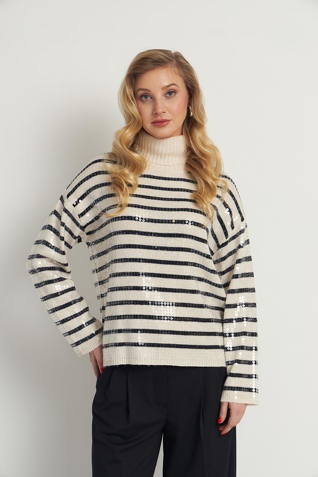 Этот пуловер от Lecomte станет отличным дополнением к вашему гардеробу. Модель выполнена в бежевом цвете с контрастными полосками, что придает ей особый шарм.
