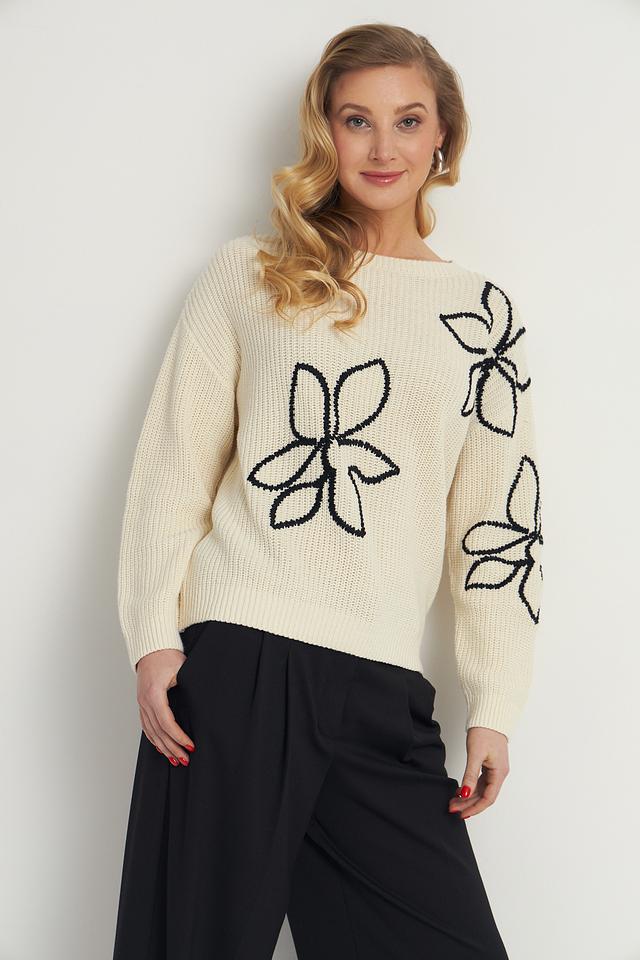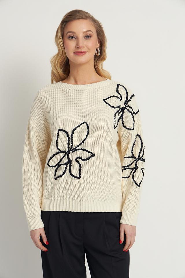Пуловер Lecomte с цветами кремовый