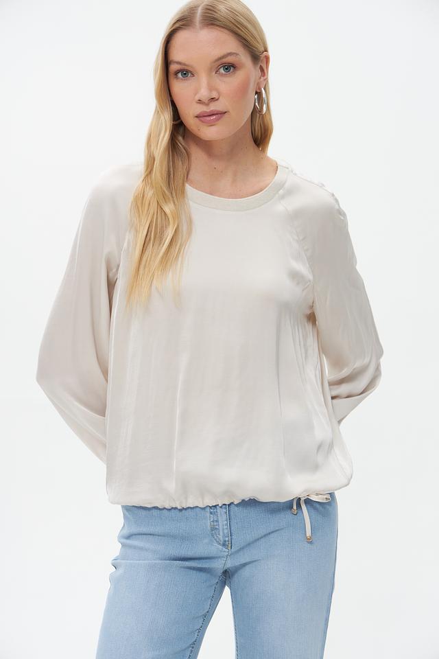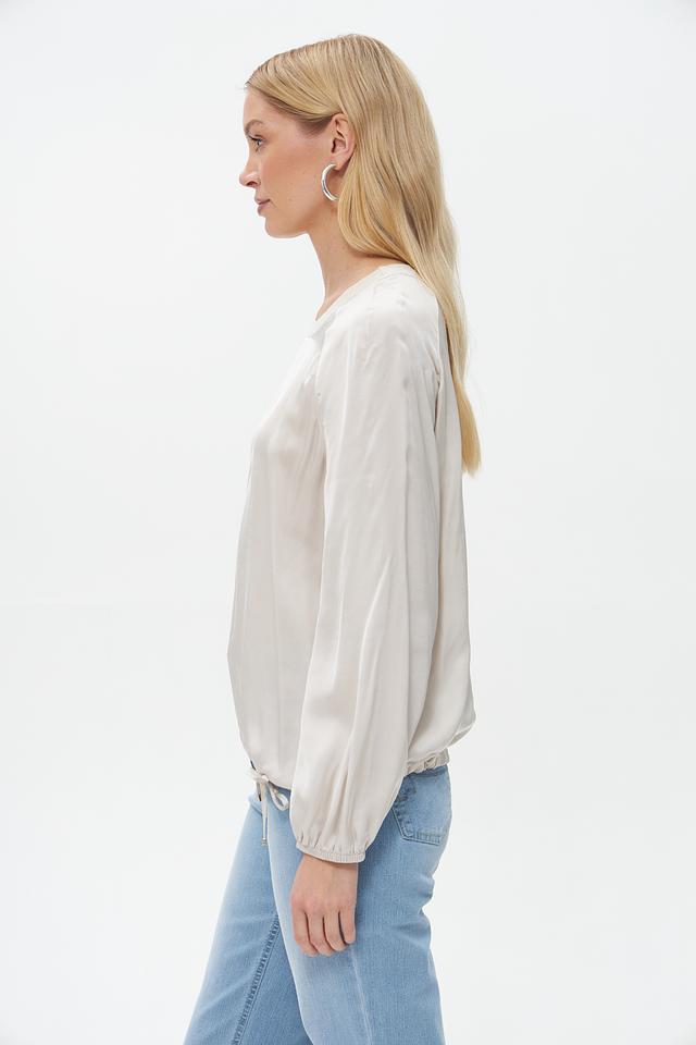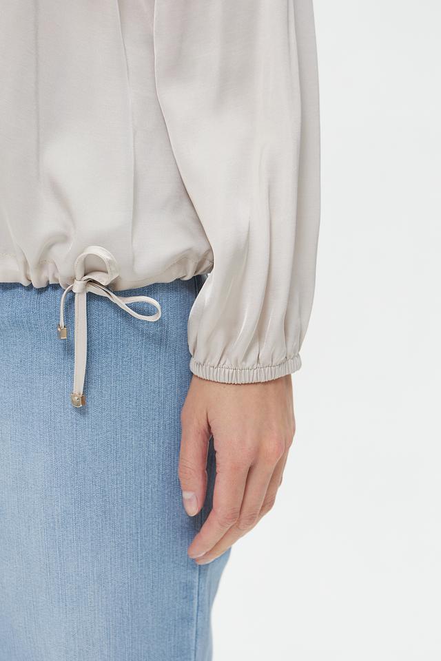 Бежевая блузка Lecomte из 100% вискозы. Модель имеет длинные рукава с манжетами на кулиске и сборку по низу изделия, регулируемую завязками. Идеальный выбор для создания элегантного и комфортного образа. Состав: вискоза 100%
