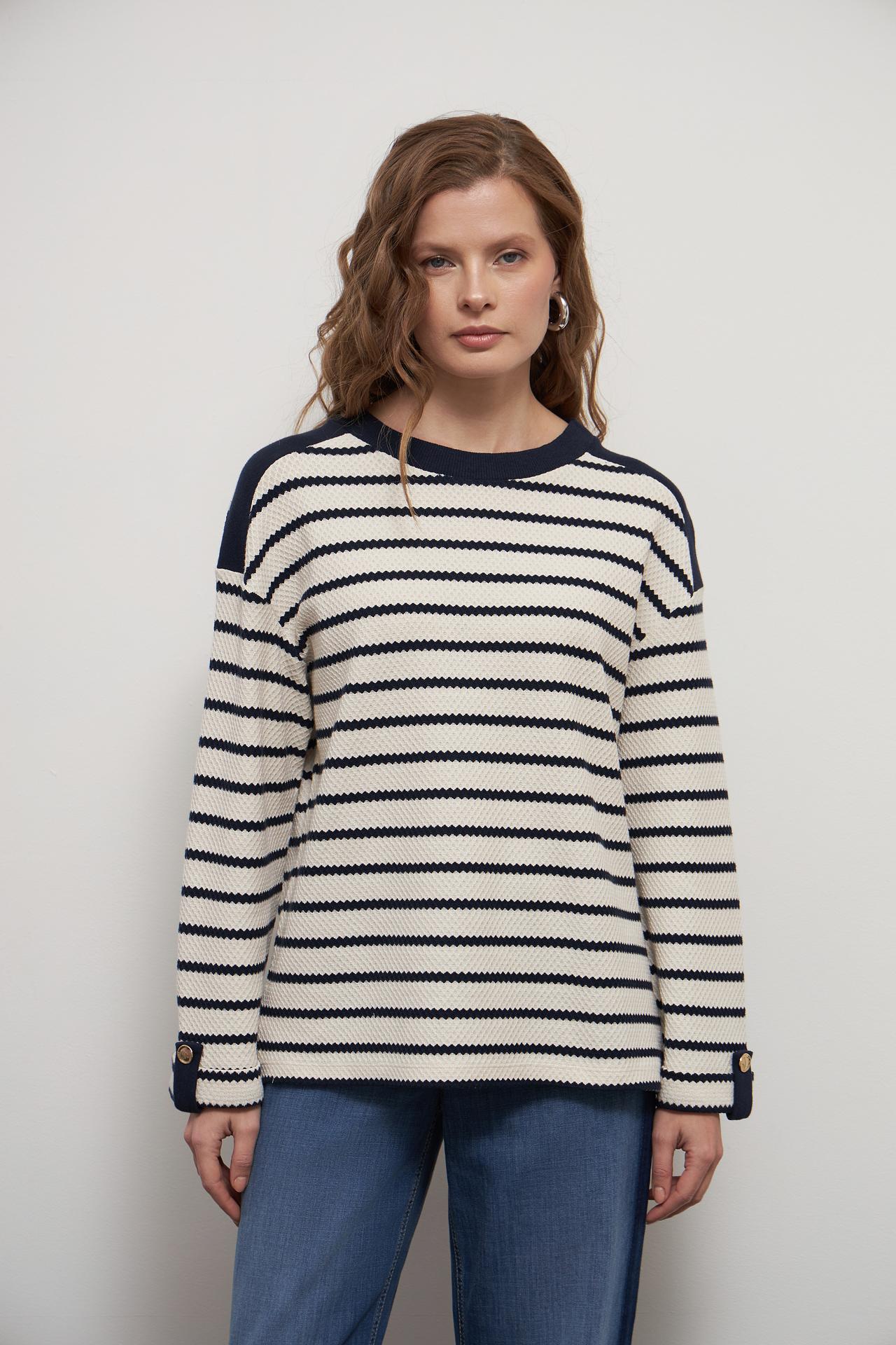 Пуловер в полоску Lecomte с пуговицами на рукавах