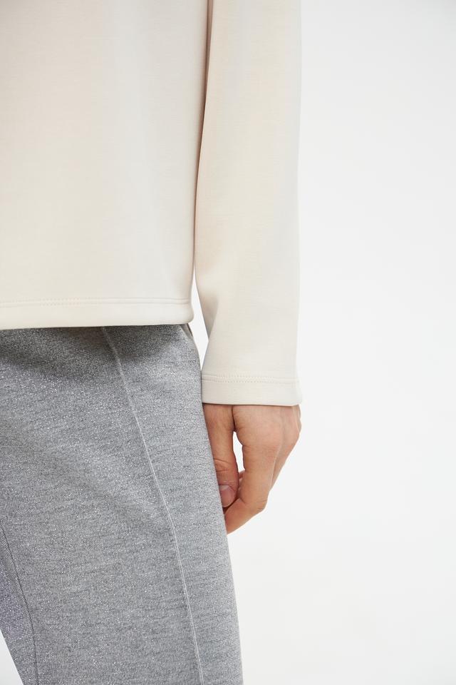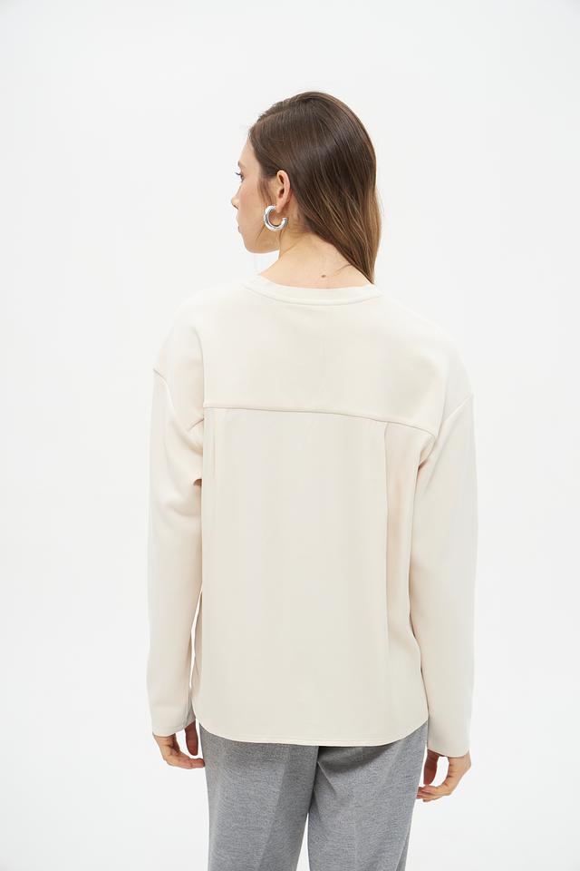 Бежевый пуловер Lecomte с актуальным принтом и комфортным кроем. Изготовлен из мягкого модала с добавлением полиэстера и эластана для удобства в носке и сохранения формы. Состав: модал 50%, полиэстер 44%, эластан 6%