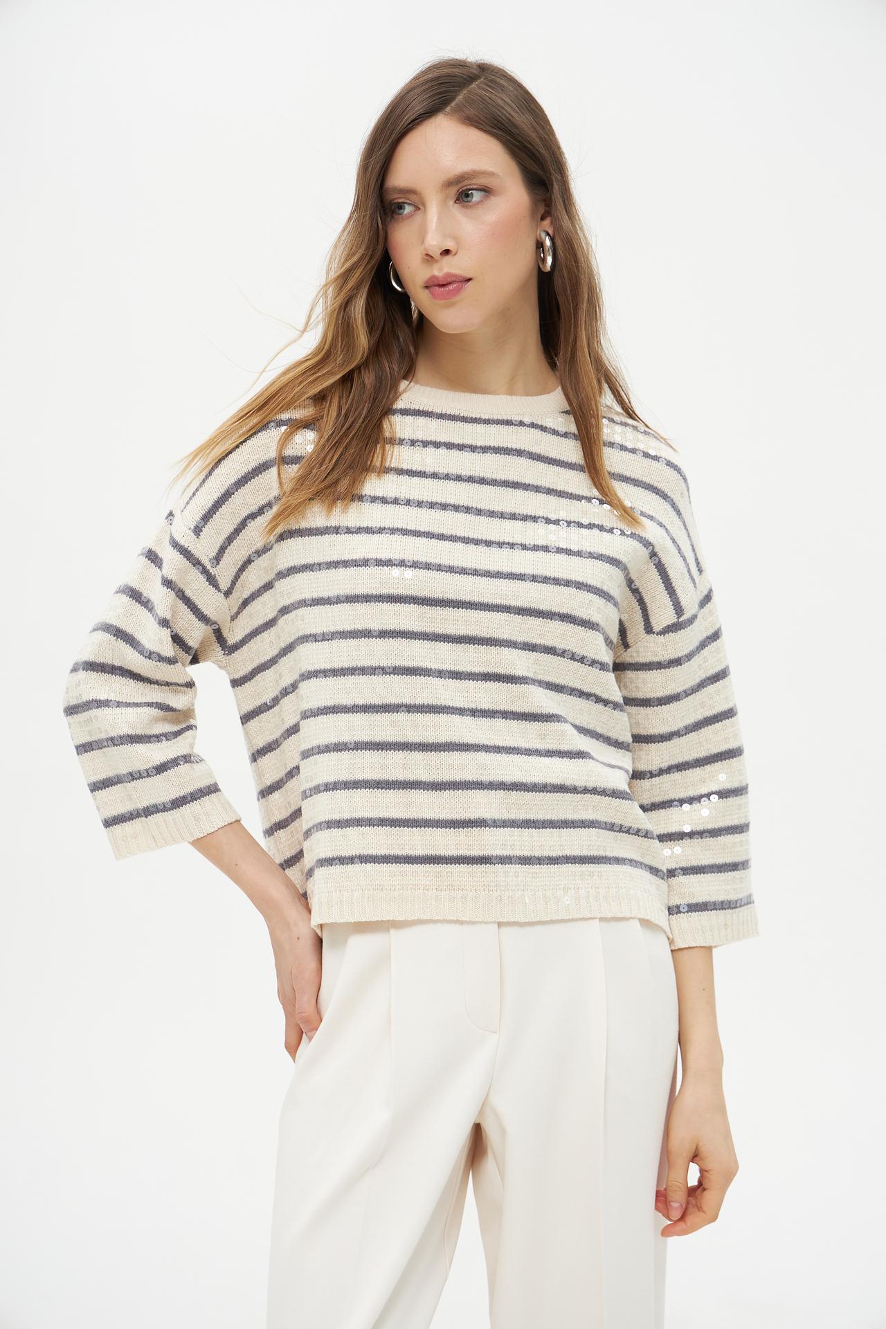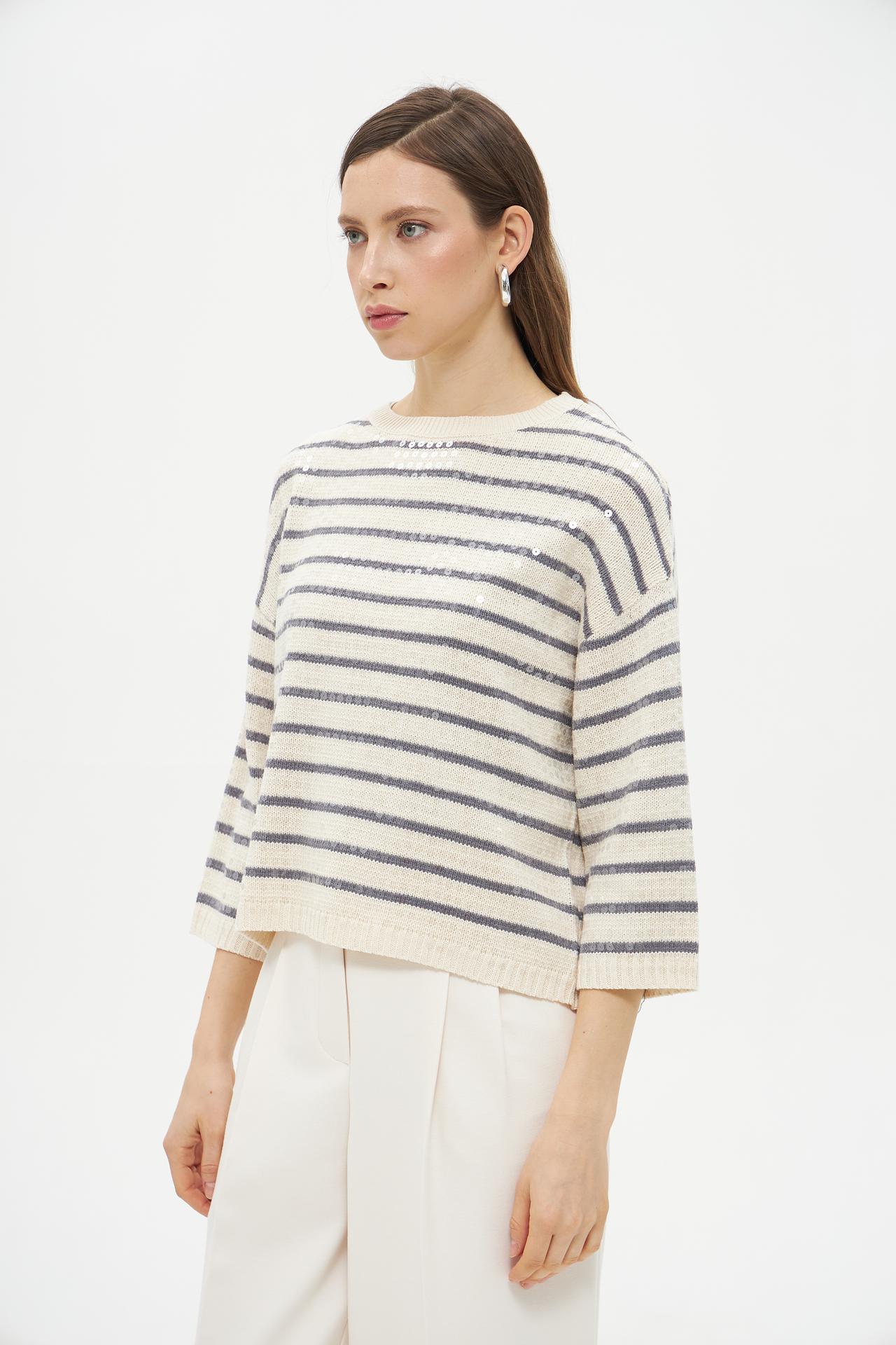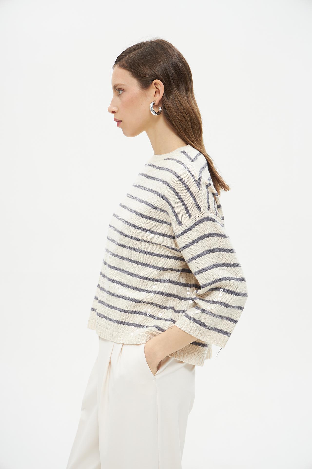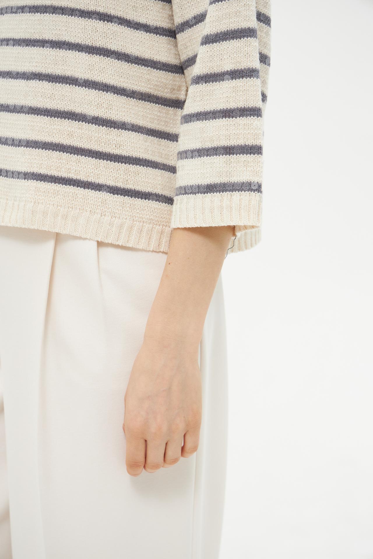 Полосатый пуловер Lecomte из хлопка с пайетками
