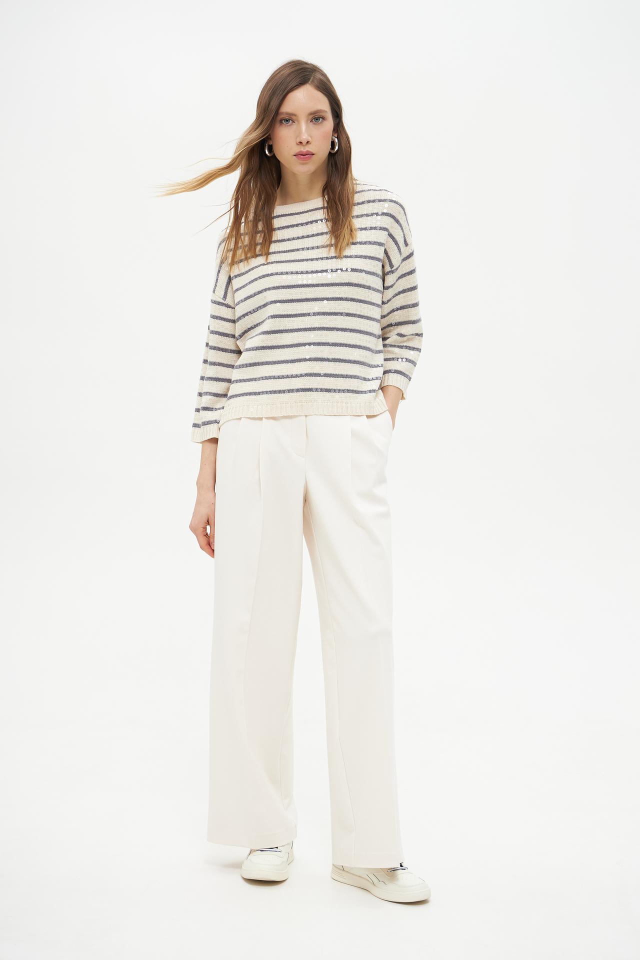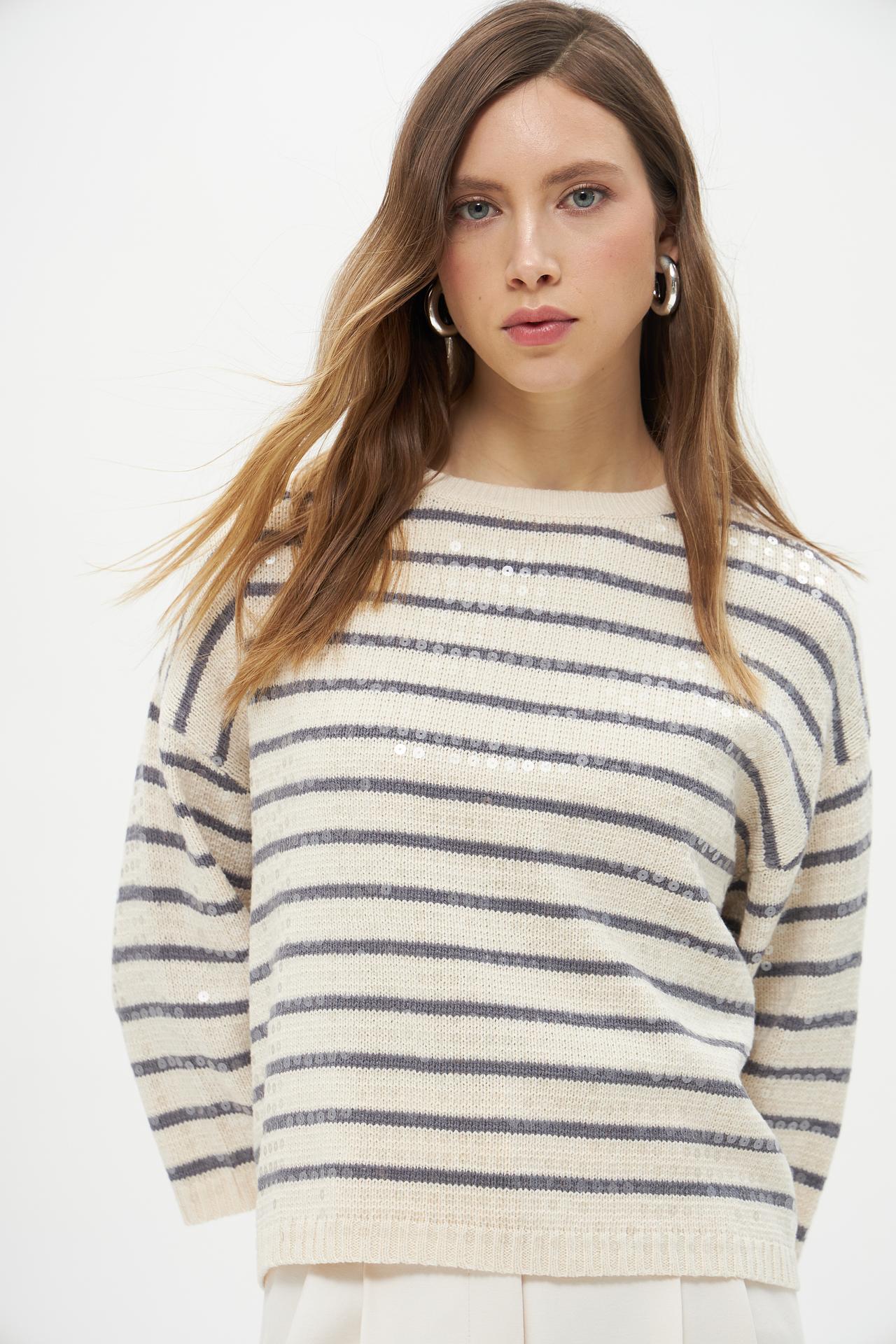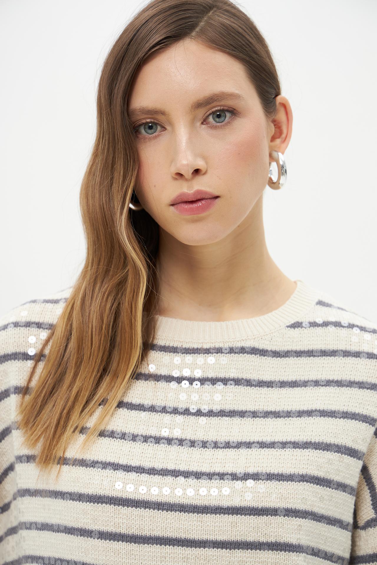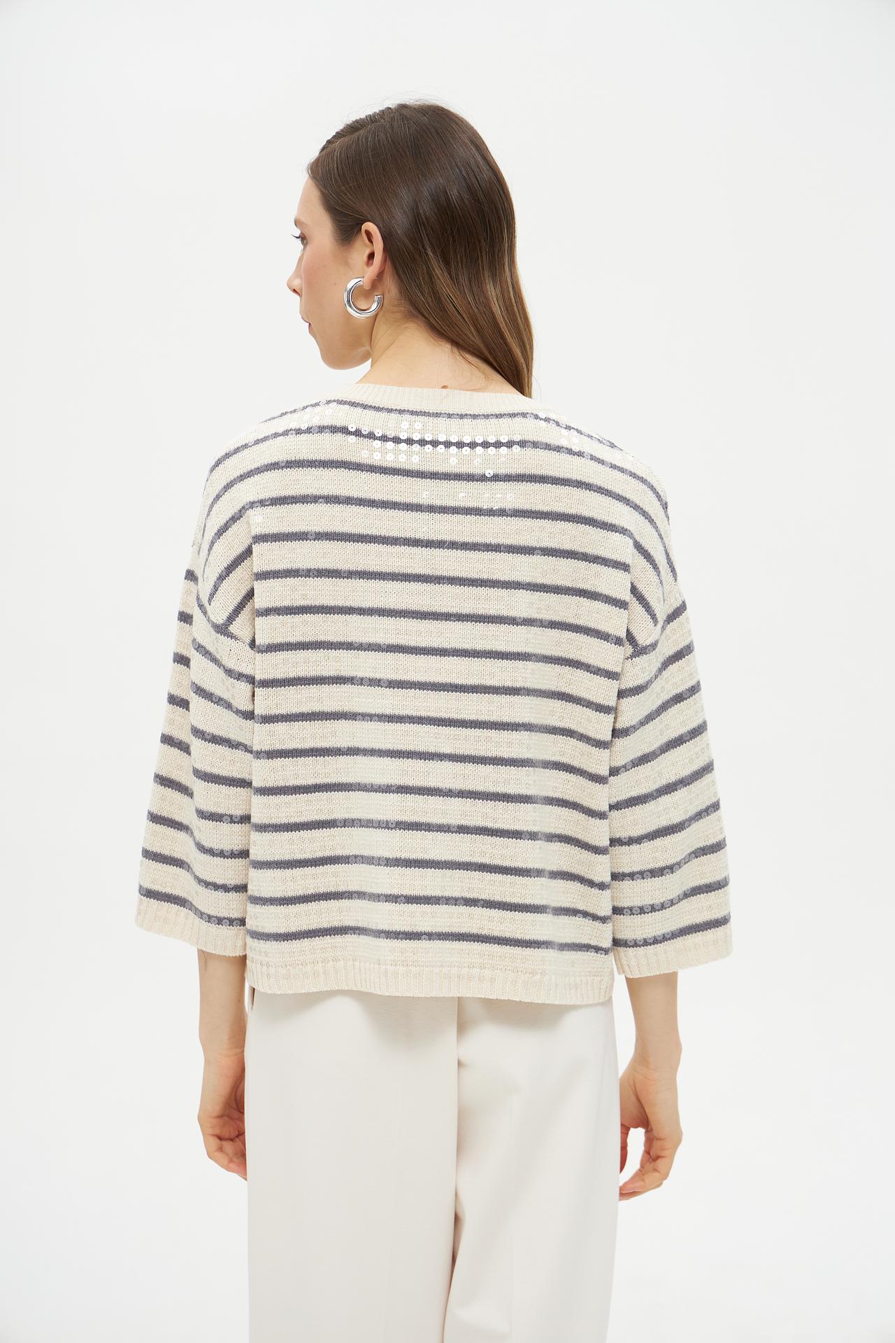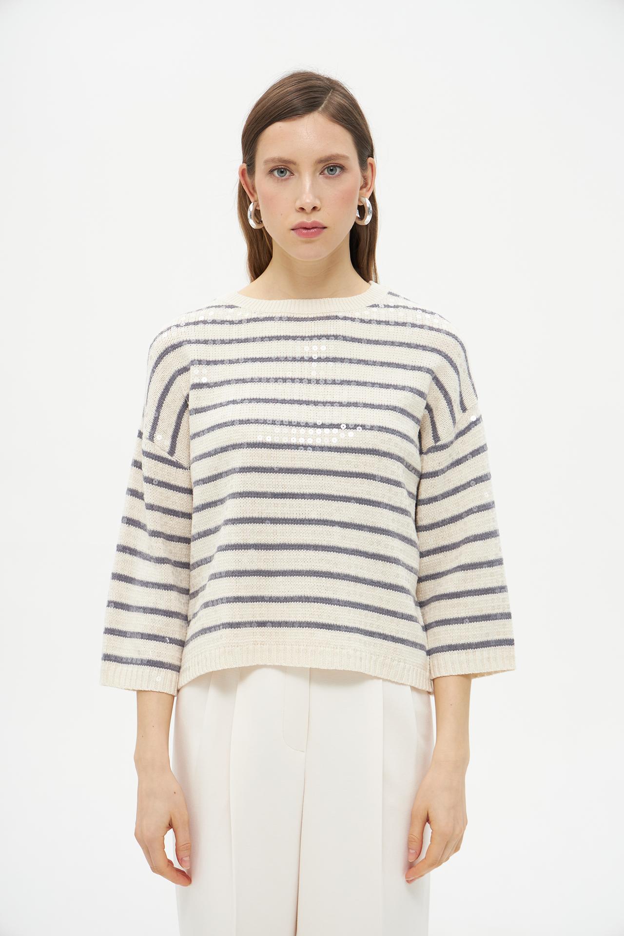 Полосатый пуловер Lecomte из хлопка с пайетками