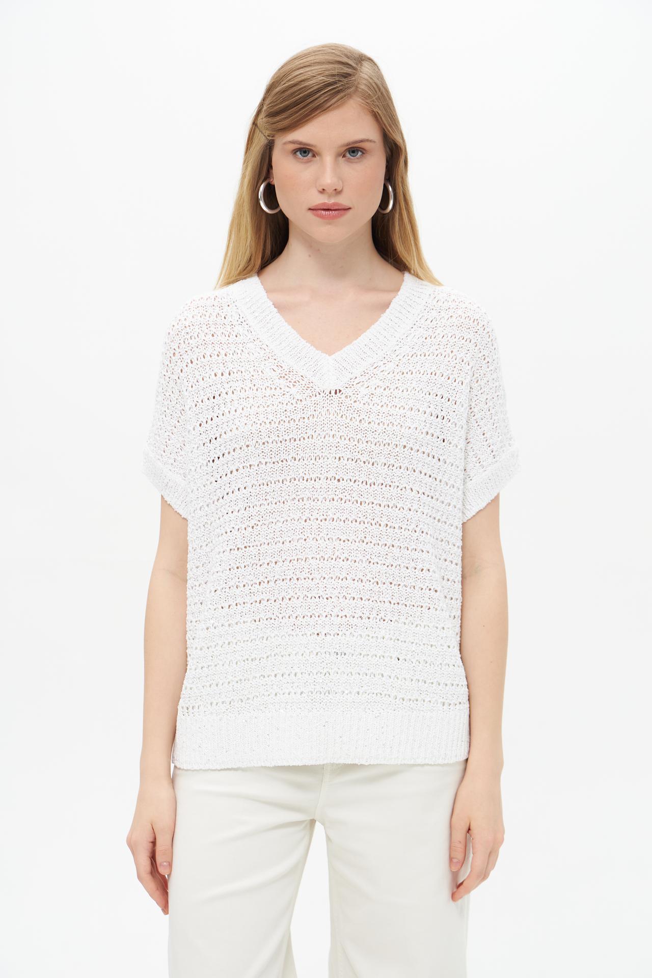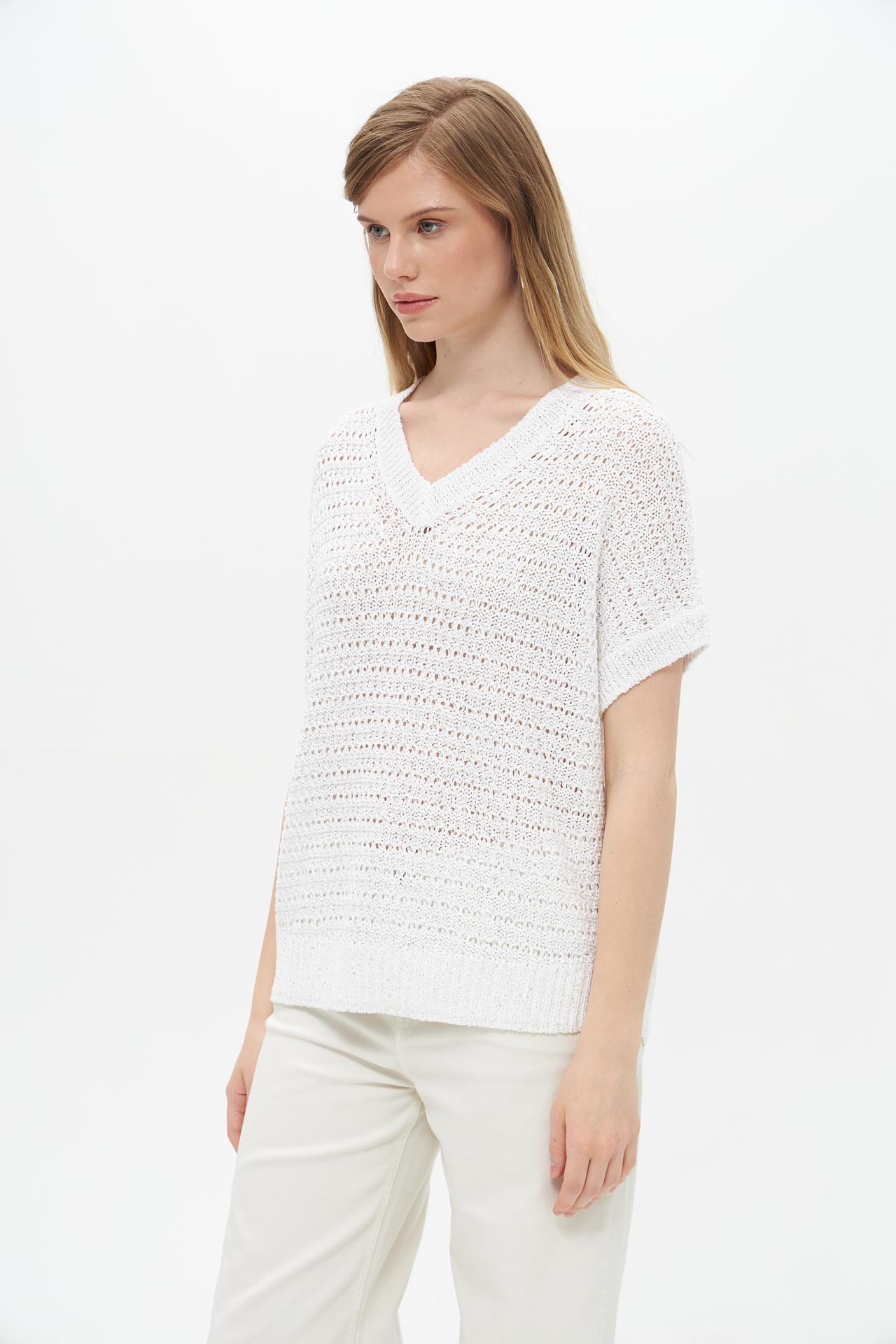 Белый пуловер Lecomte с короткими рукавами и V-вырезом