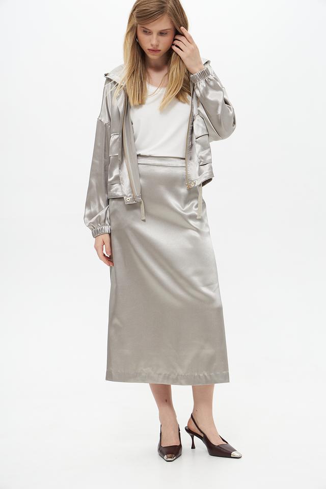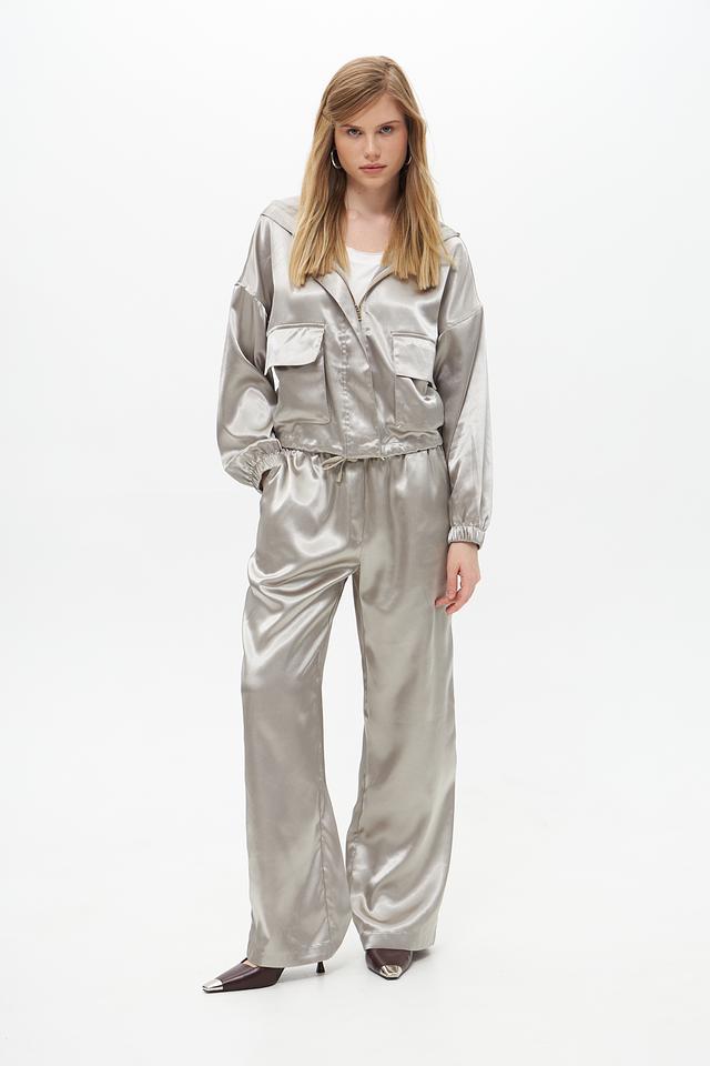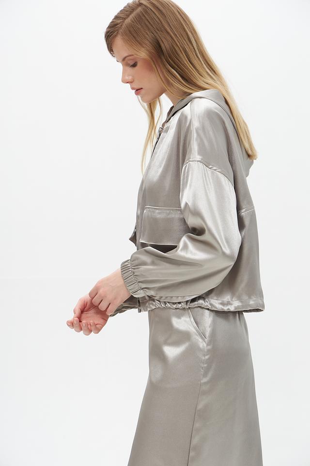 Стильный жакет Lecomte серого цвета выполнен из гладкого атласа. Модель с капюшоном и удобными карманами станет отличным дополнением к вашему образу. Жакет изготовлен из 100% полиэстера. Состав: полиэстер 100%