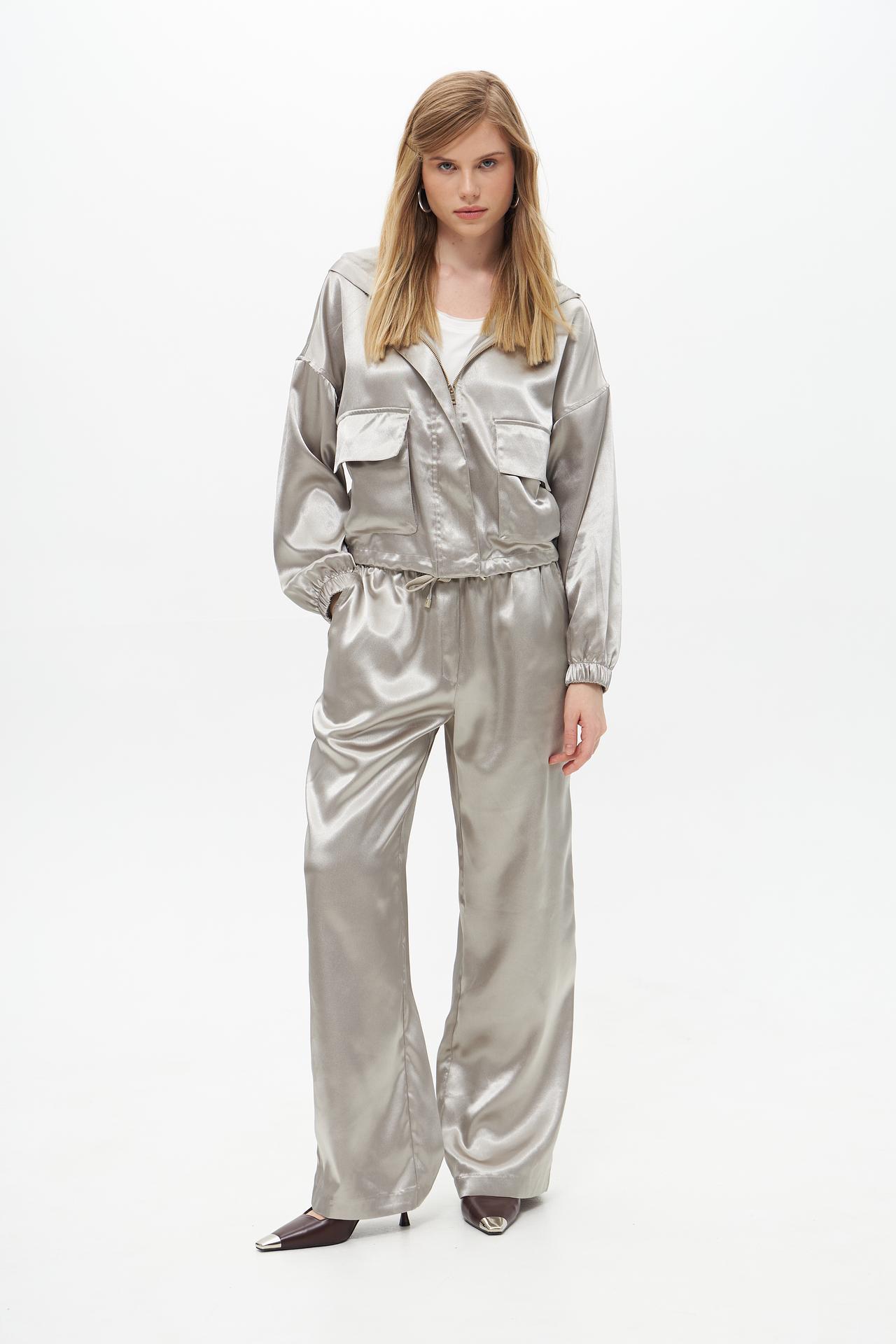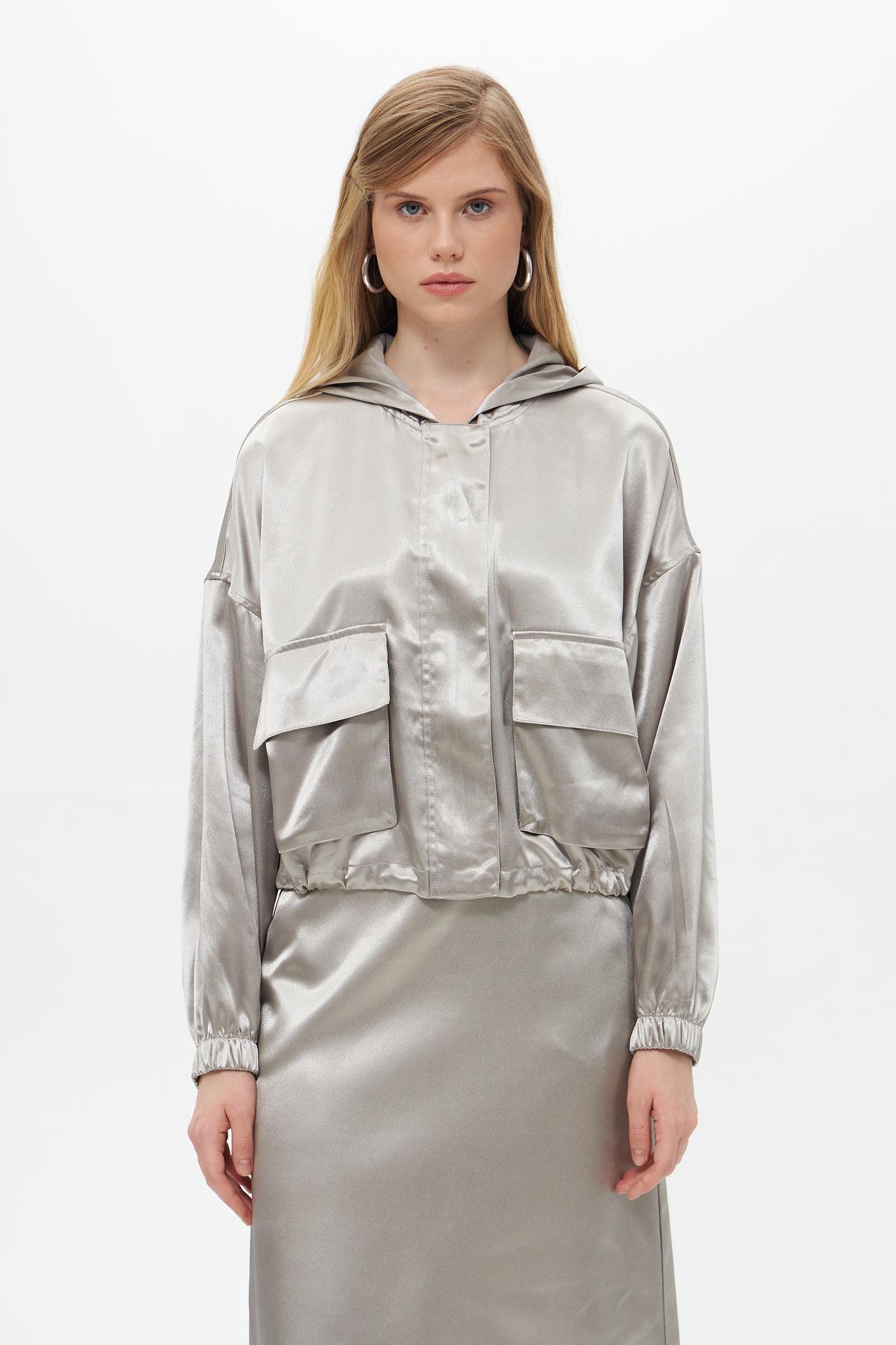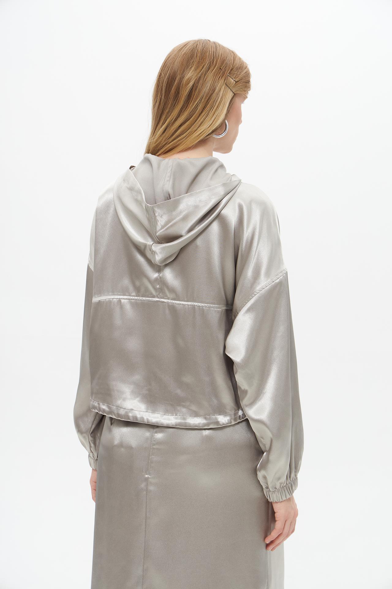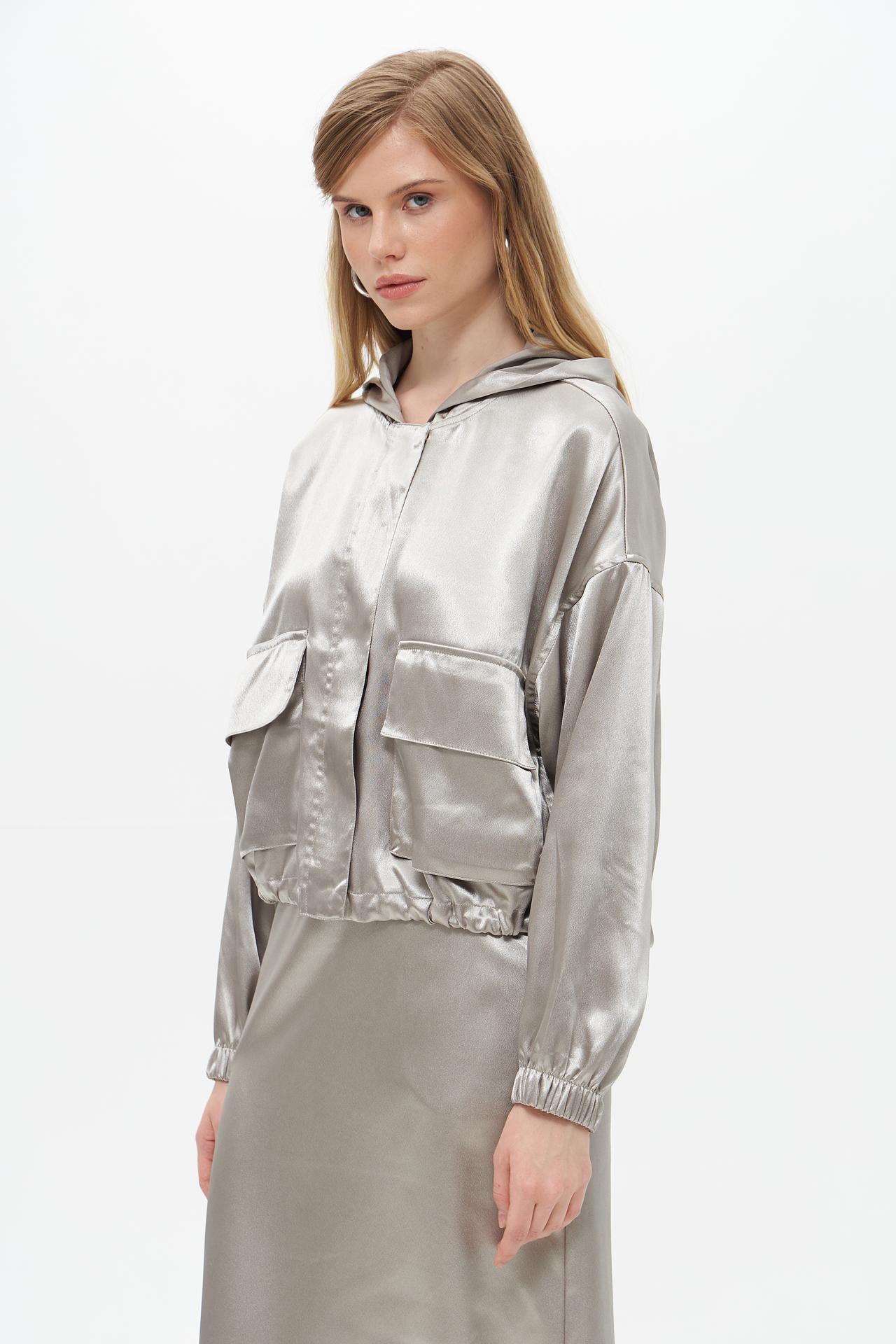Серебристый жакет Lecomte с накладными карманами и капюшоном