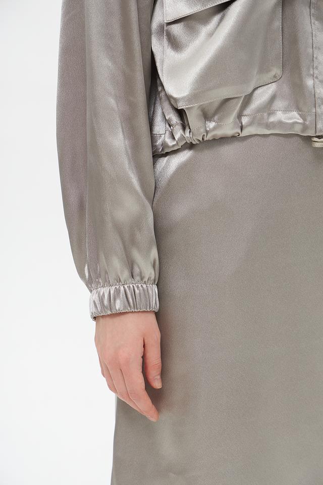 Этот жакет от Lecomte – идеальный выбор для создания современного и элегантного образа. Выполненный из высококачественного атласа серого цвета, он отличается приятной на ощупь текстурой и благородным блеском.