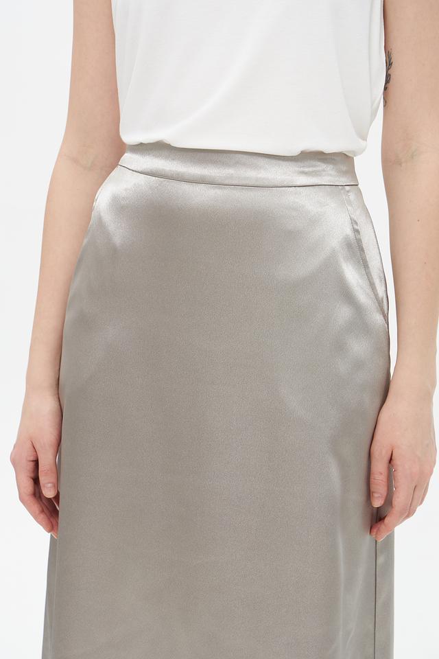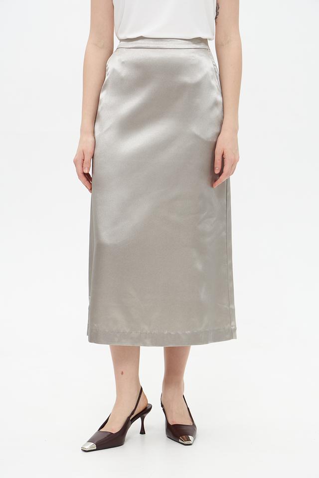 Стильная юбка Lecomte серого цвета выполнена из гладкого атласа. Прямой крой и длина миди делают эту юбку универсальным элементом гардероба, подходящим для создания как повседневных, так и вечерних образов. Состав: полиэстер 100%