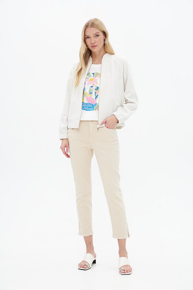 Бежевый жакет Lecomte из хлопка с полиэстером — стильное и комфортное решение для создания модных образов. Застежка на молнию, воротник-стойка и текстурированная ткань придают изделию особый шарм. Состав: хлопок 53%, полиэстер 45%, эластан 2%