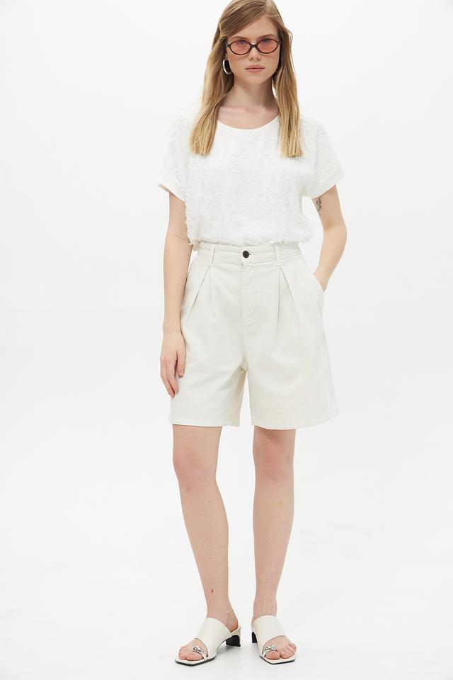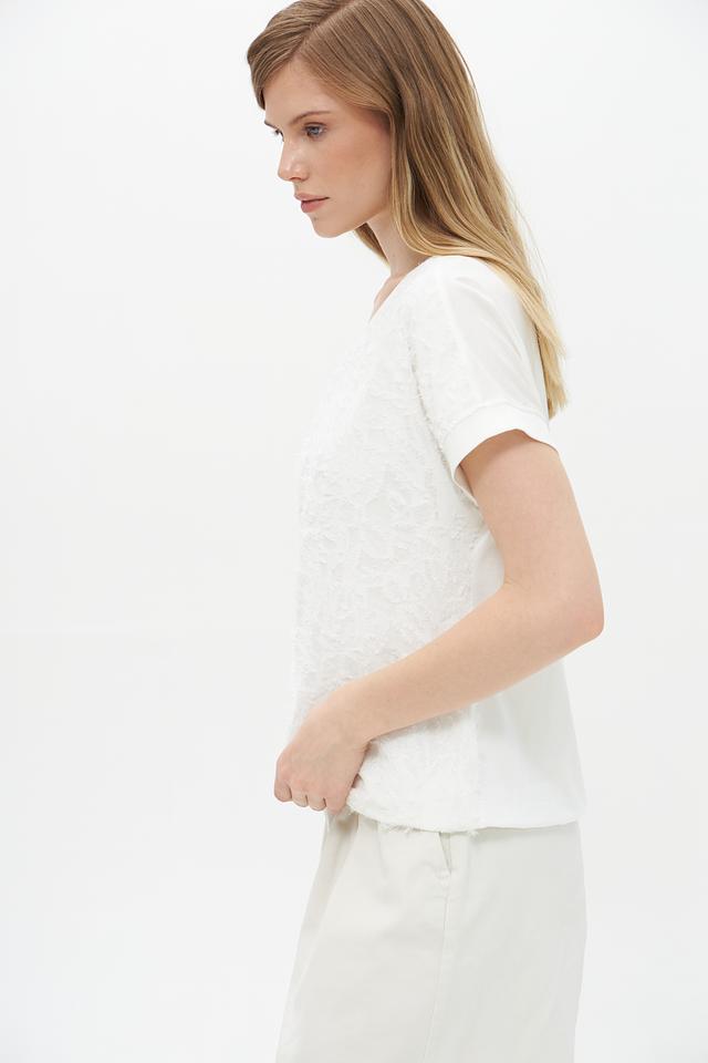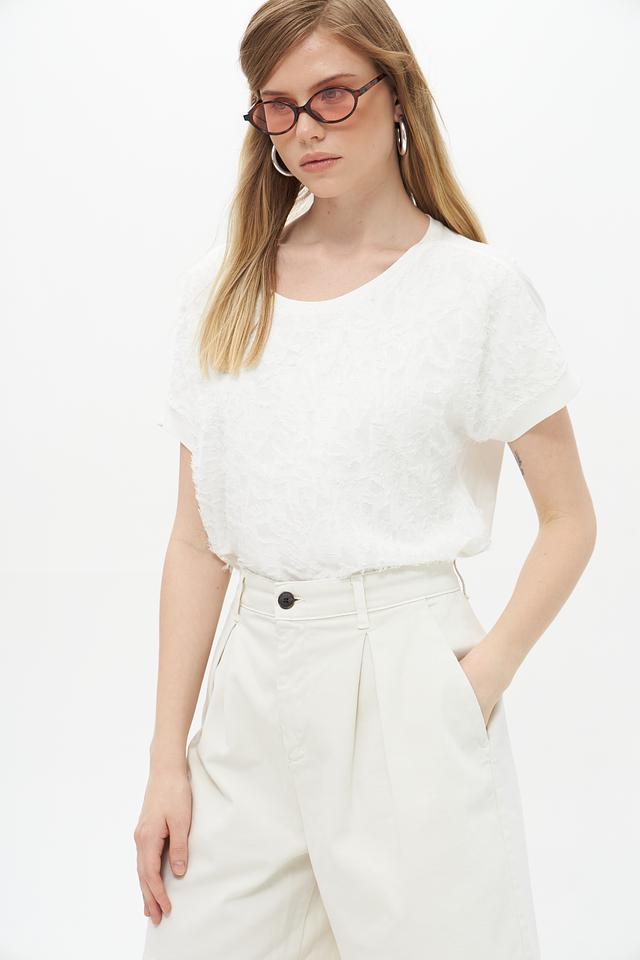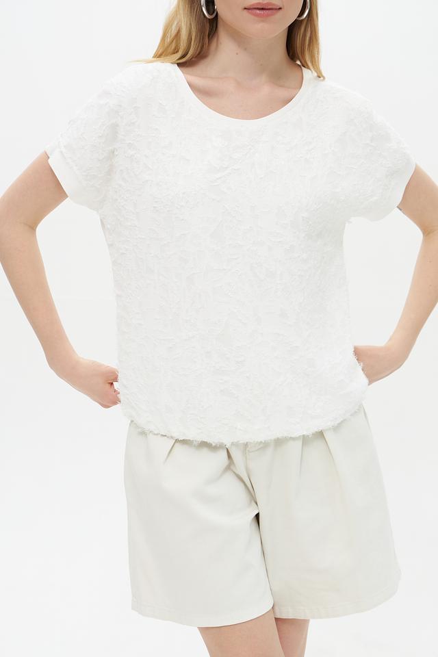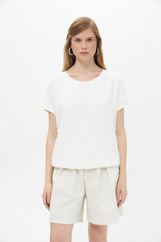 Белая блуза Lecomte из вискозы с выраженной текстурой. Модель свободного кроя с короткими рукавами и округлым вырезом горловины. Состав: 96% вискоза, 4% эластан. Состав: вискоза 96%, эластан 4%