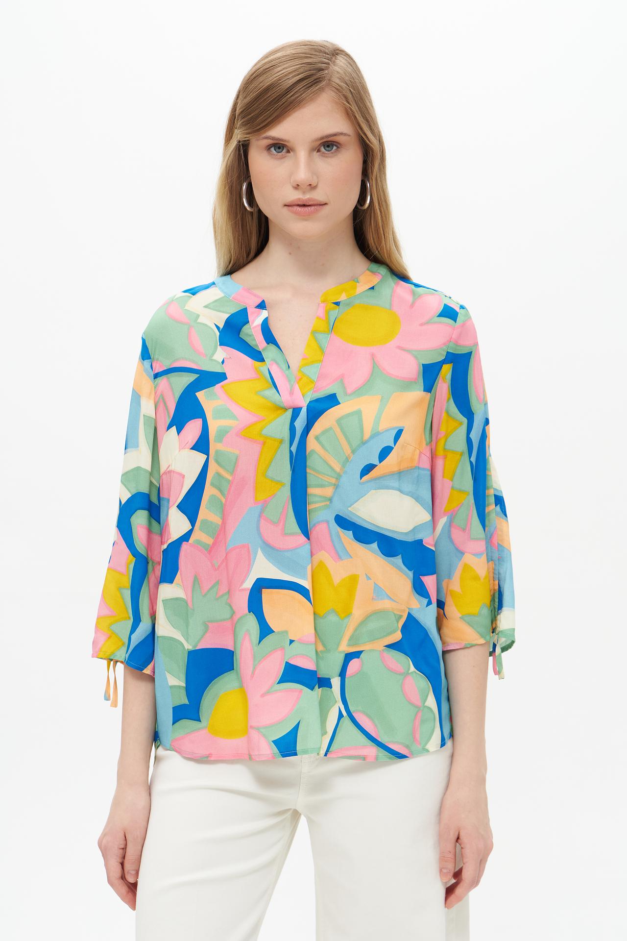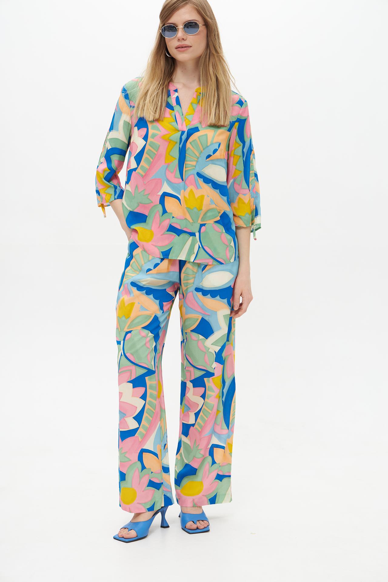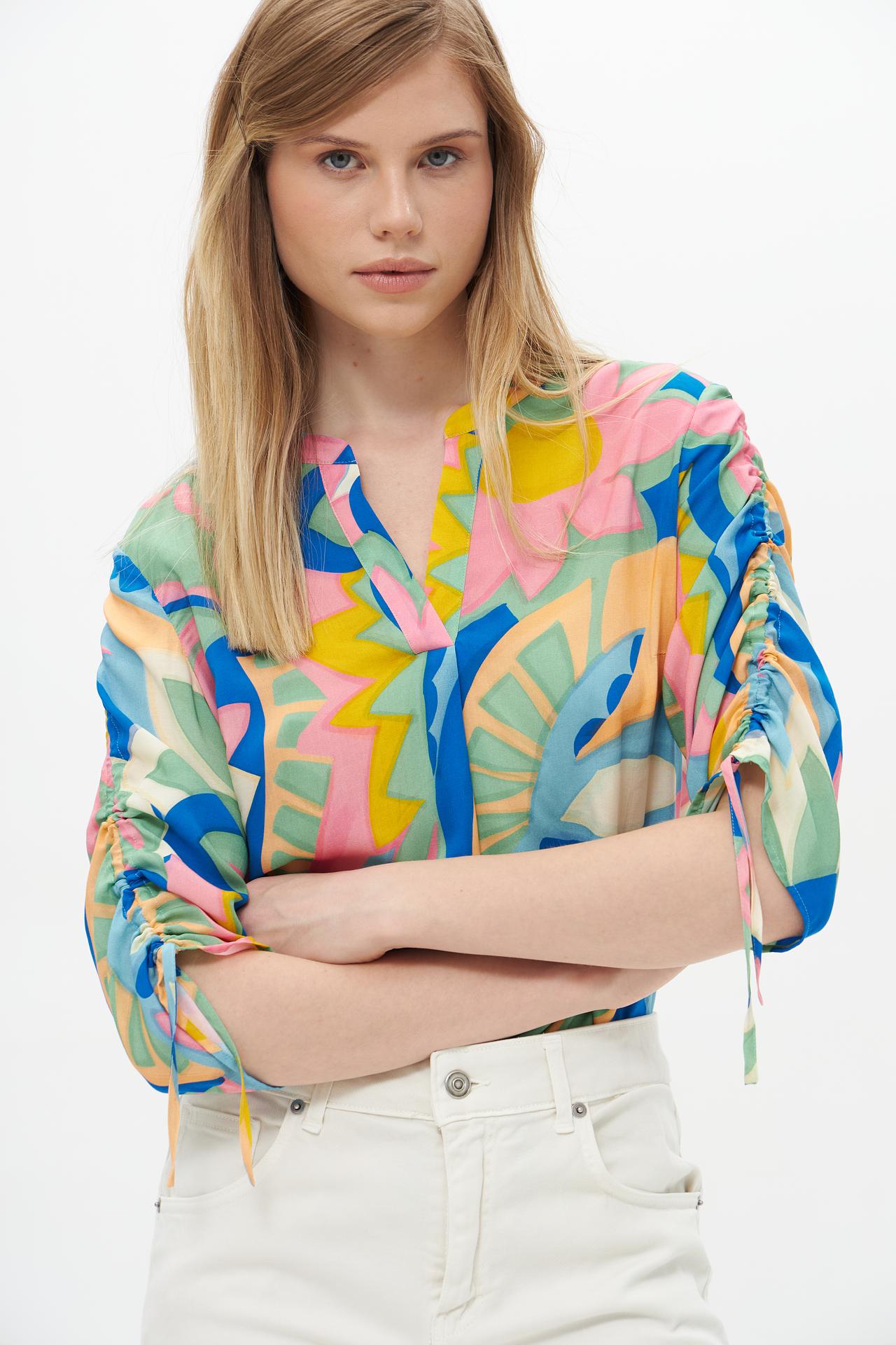 Блуза Lecomte с ярким принтом и рукавами на кулиске