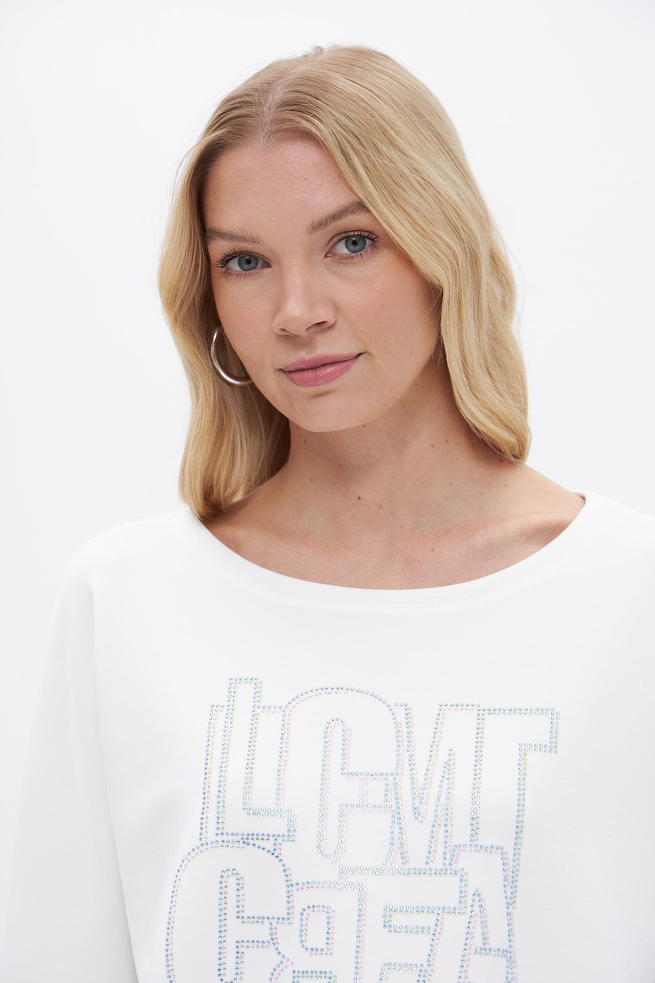 - Дизайн: Лаконичный крой дополнен оригинальной надписью из страз.