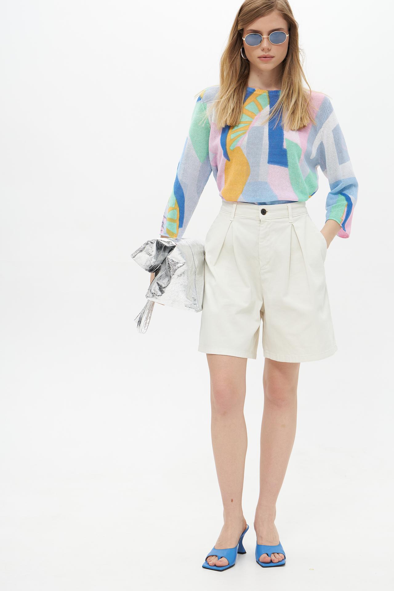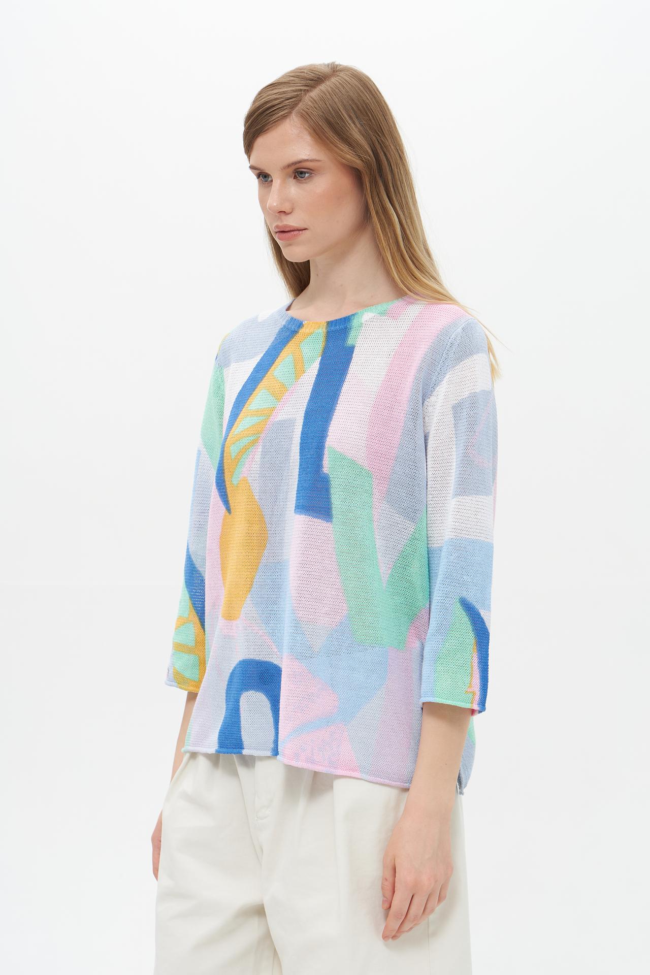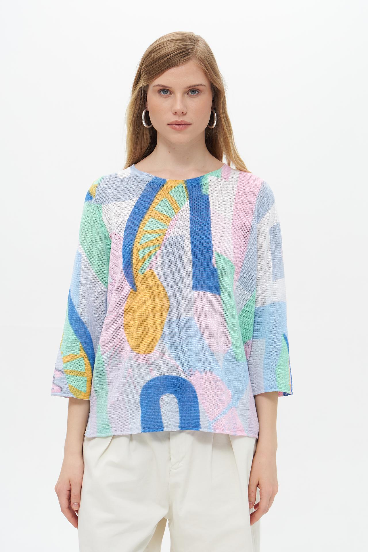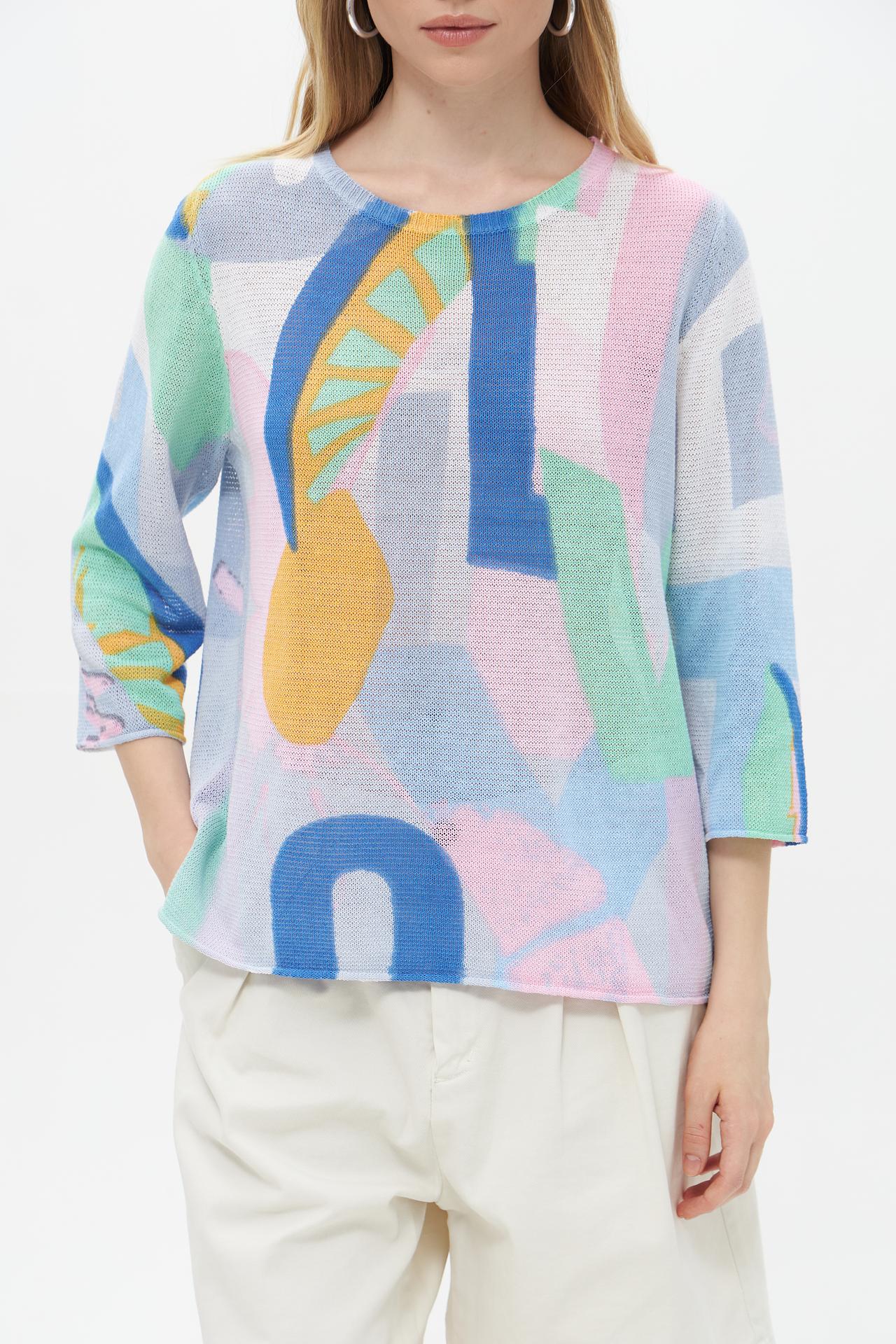 - Уникальный дизайн: Оригинальный абстрактный принт делает этот пуловер настоящим произведением искусства.