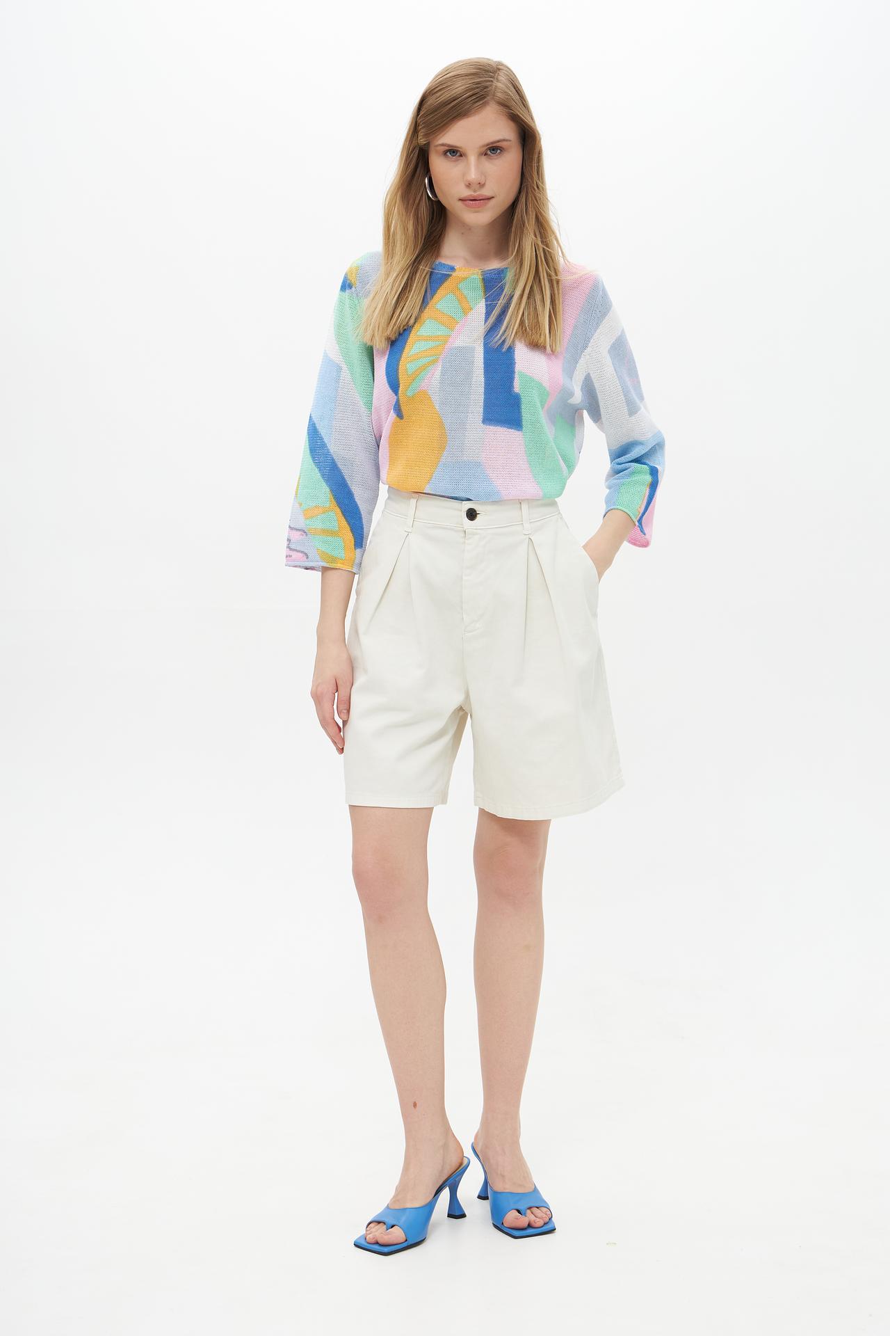 Легкий и воздушный женский пуловер от Lecomte – идеальное дополнение к вашему гардеробу. Изготовлен из смесовой пряжи премиального качества, сочетающей хлопок, полиамид и лен, что обеспечивает комфорт и долговечность. Яркий абстрактный принт добавит красок и индивидуальности вашему образу. Этот пуловер станет отличным выбором для создания непринужденных и стильных образов. Идеален для тех, кто ценит комфорт и качество.
