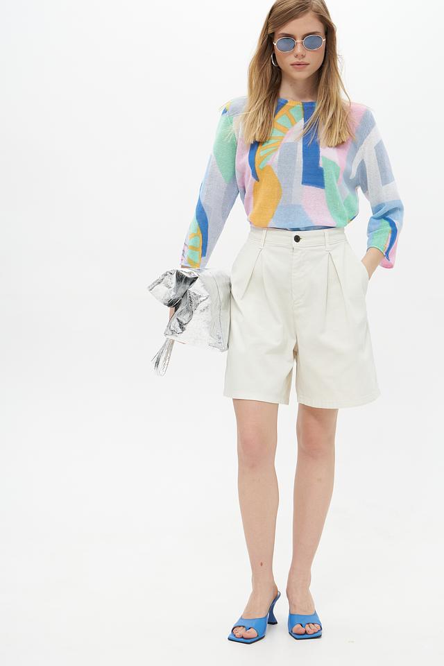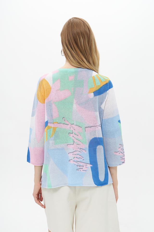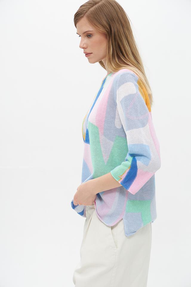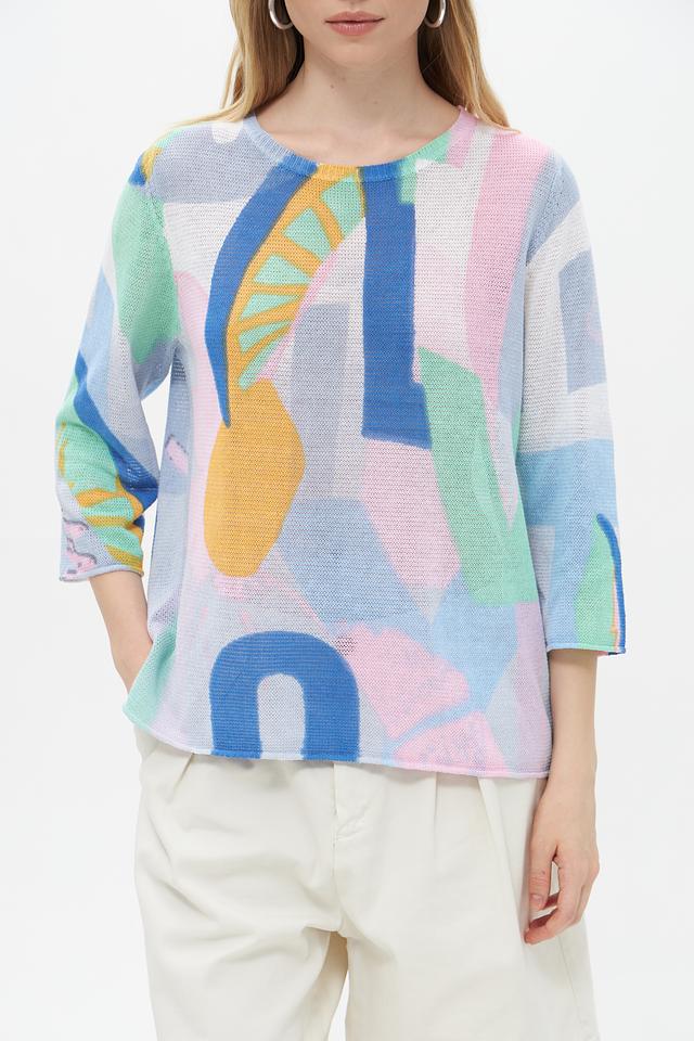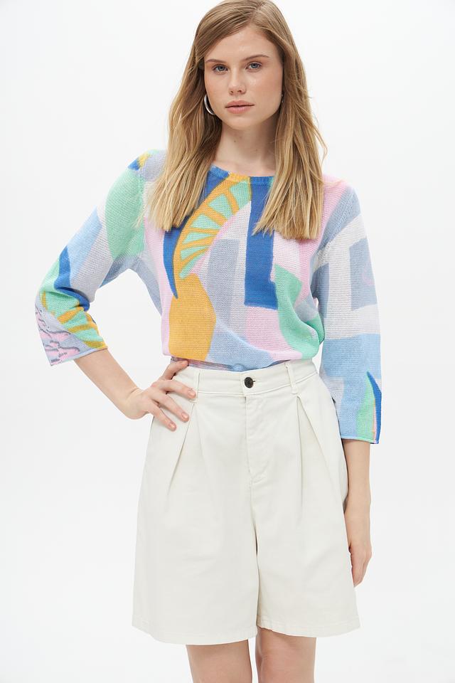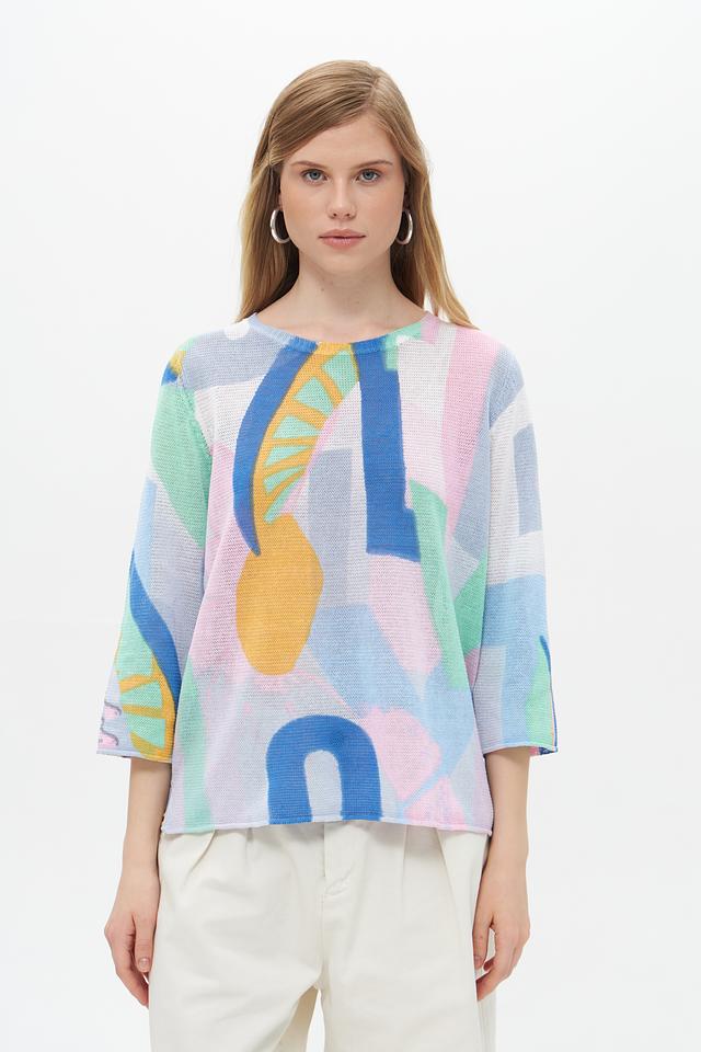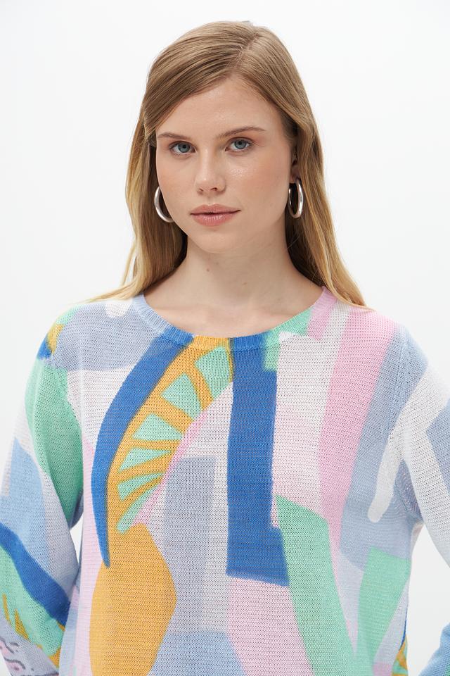 Женский пуловер Lecomte яркого разноцветного дизайна. Изготовлен из хлопка с добавлением льна и полиамида, обеспечивающих комфорт и износостойкость. Состав: хлопок 61%, лен 21%, полиамид 18%