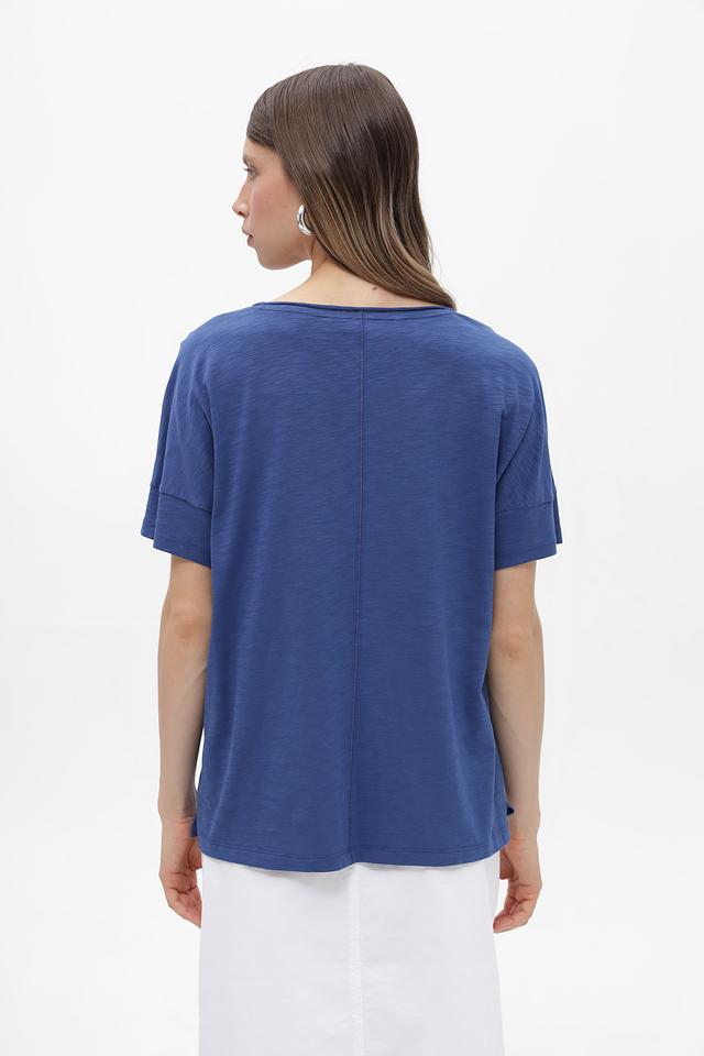Женская футболка от Lecomte, выполненная в насыщенном синем цвете, станет отличным дополнением к вашему гардеробу.
