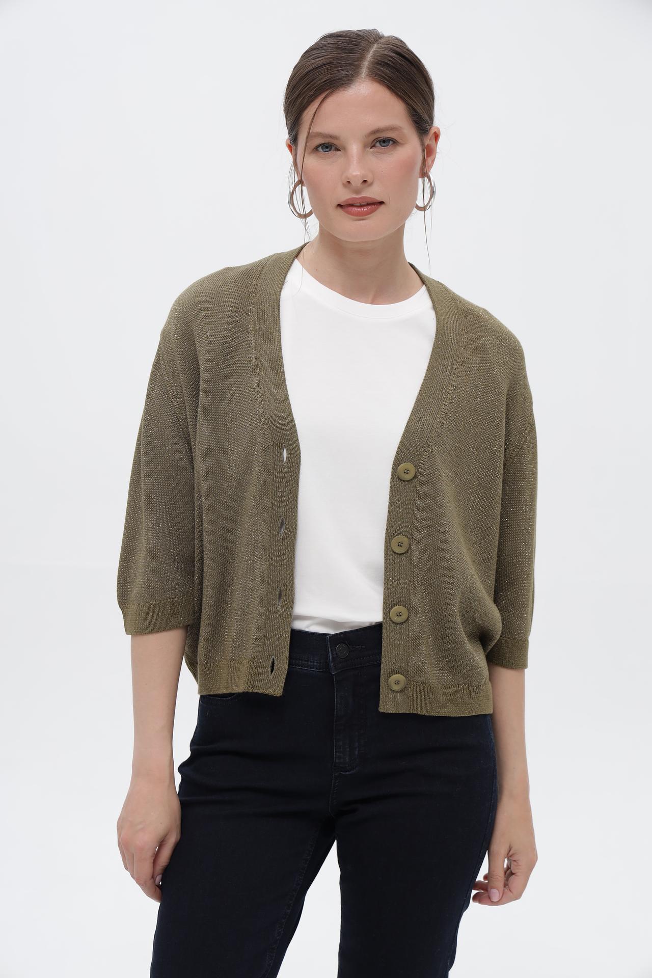 - Цвет: Жакет представлен в универсальном цвете хаки, который легко сочетается с различными элементами гардероба.