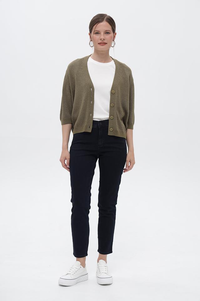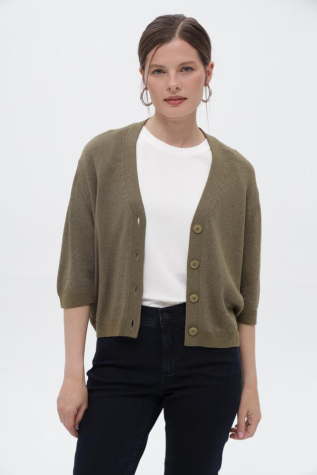 Оливковый жакет Lecomte с 3/4 рукавом – стильный выбор для создания повседневных образов. Изготовлен из мягкого трикотажа с добавлением хлопка и полиакрила. Застегивается на пуговицы. Состав: хлопок 46%, полиакрил 46%, полиэстер 5%, полиамид 3%