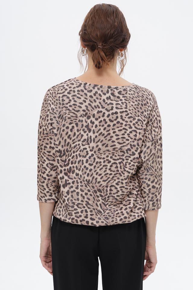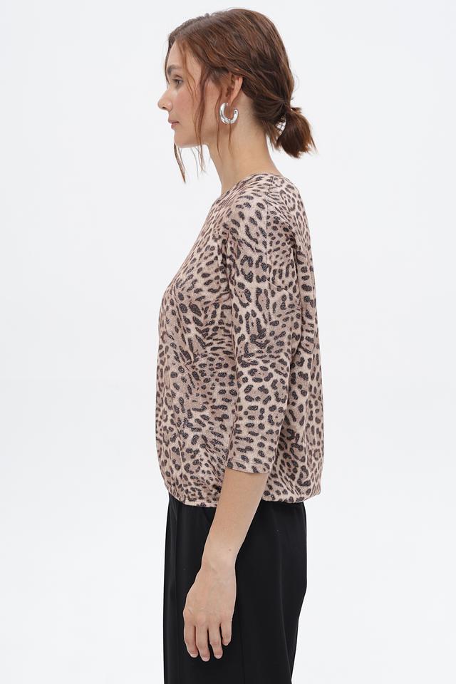 Женский пуловер Lecomte бежевого цвета с леопардовым принтом. Изготовлен из мягкой вискозы с добавлением полиамида и полиэстера, обеспечивающих комфорт и износостойкость. Состав: вискоза 40%, полиамид 26%, полиэстер 24%, метализ.нить 10%