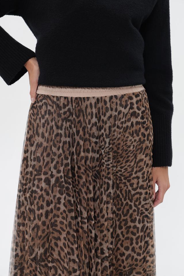 Юбка имеет длину миди и плейсированную юбку, что придает ей элегантный и женственный вид. Эластичный пояс обеспечивает комфортную посадку по фигуре.