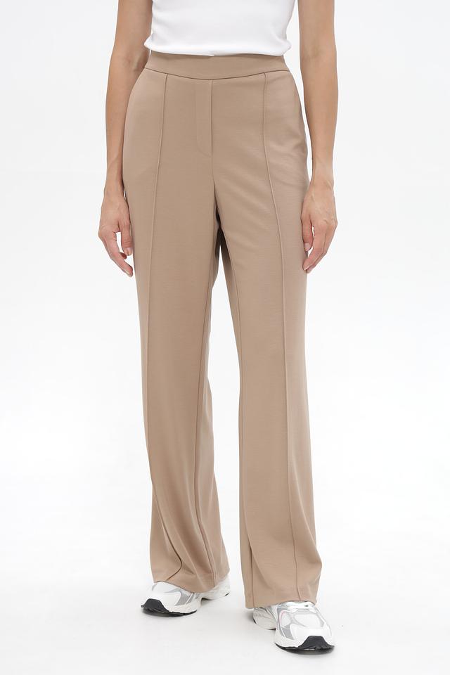 Бежевые брюки клёш от Lecomte, выполнены из мягкой вискозы с добавлением полиэстера и эластана. Удобная посадка на резинке и практичный состав. Состав: вискоза 72%, полиэстер 23%, эластан 5%