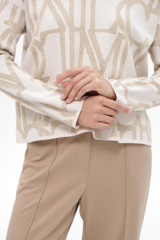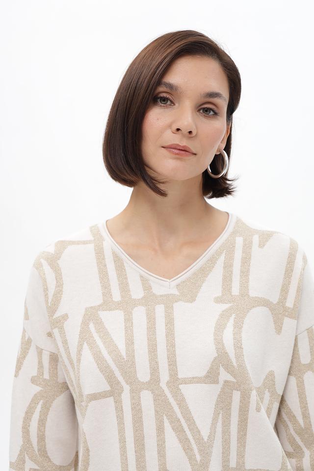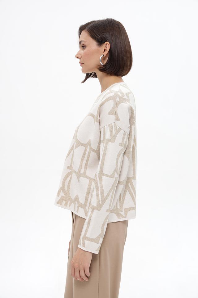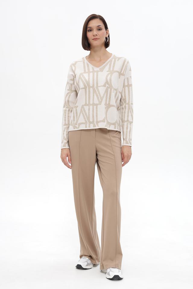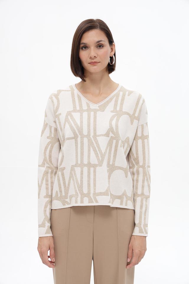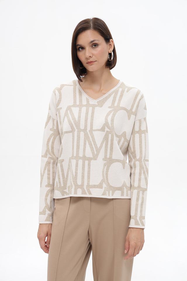 Бежевый пуловер Lecomte с актуальным принтом логотипа. Изготовлен из мягкой вискозы с добавлением полиэстера и полиамида для комфорта и износостойкости. Состав: вискоза 58%, полиэстер 23%, полиамид 13%, метализ.нить 6%