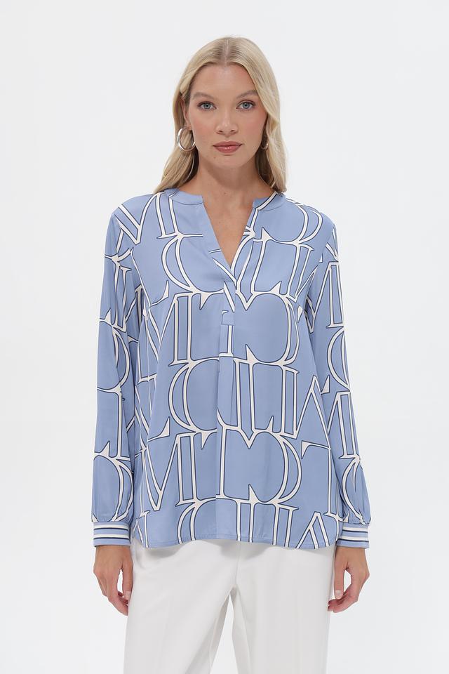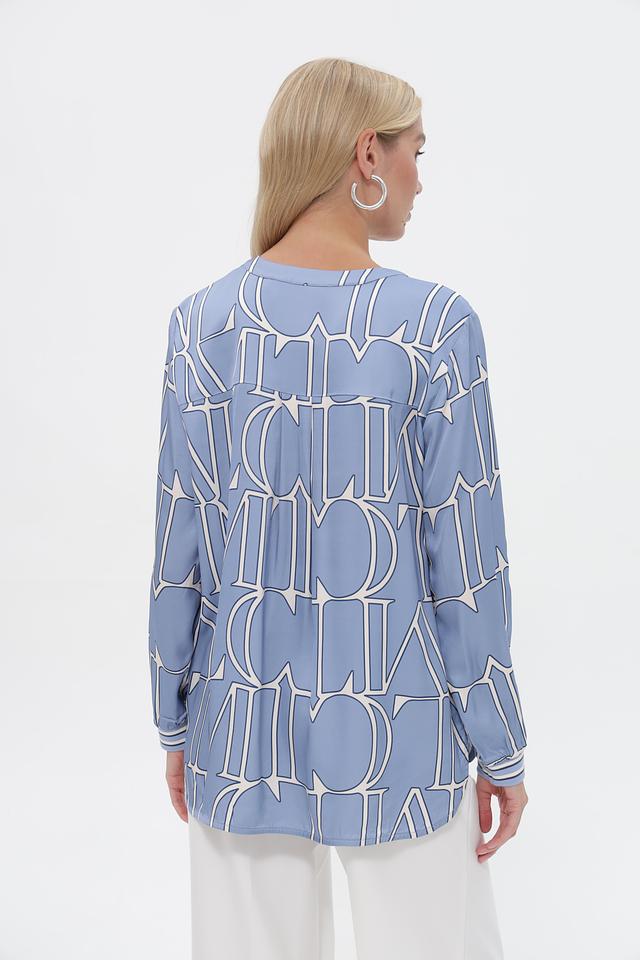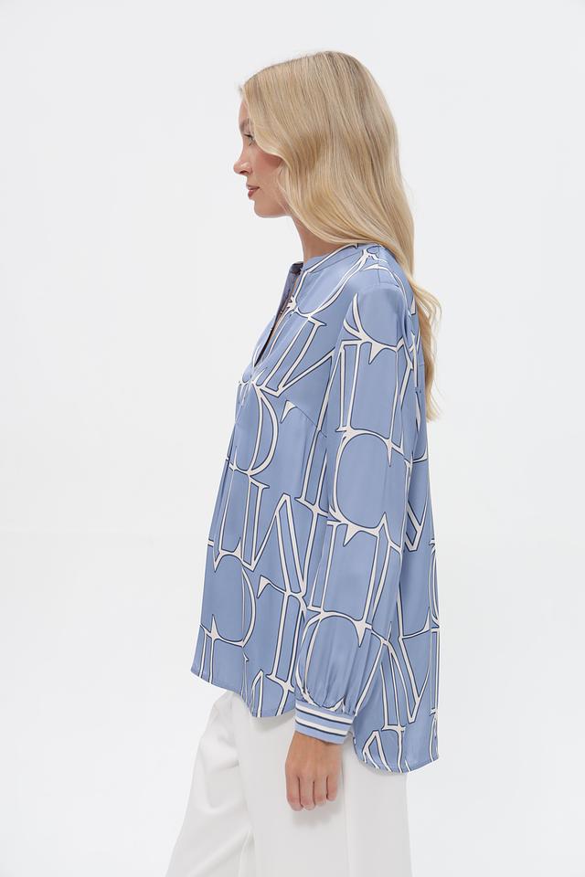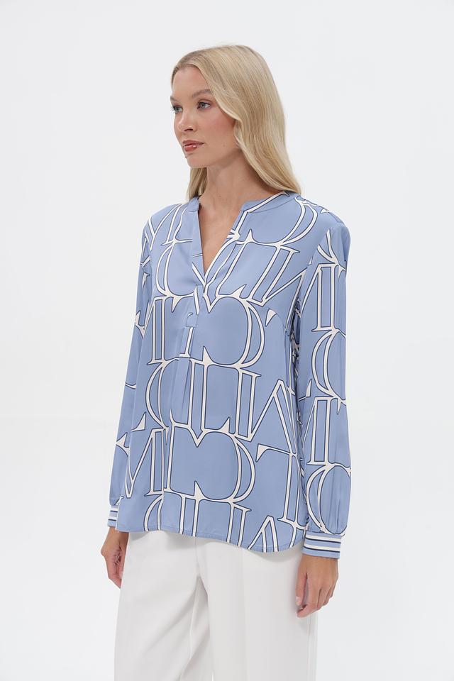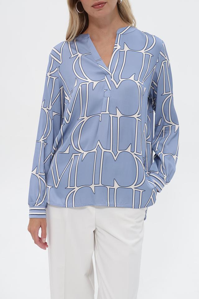 Эта блузка от бренда Lecomte выполнена в приятном голубом цвете и украшена стильным белым принтом, состоящим из повторяющихся логотипов бренда. Модель имеет свободный крой, который не сковывает движений и обеспечивает комфорт в течение всего дня.