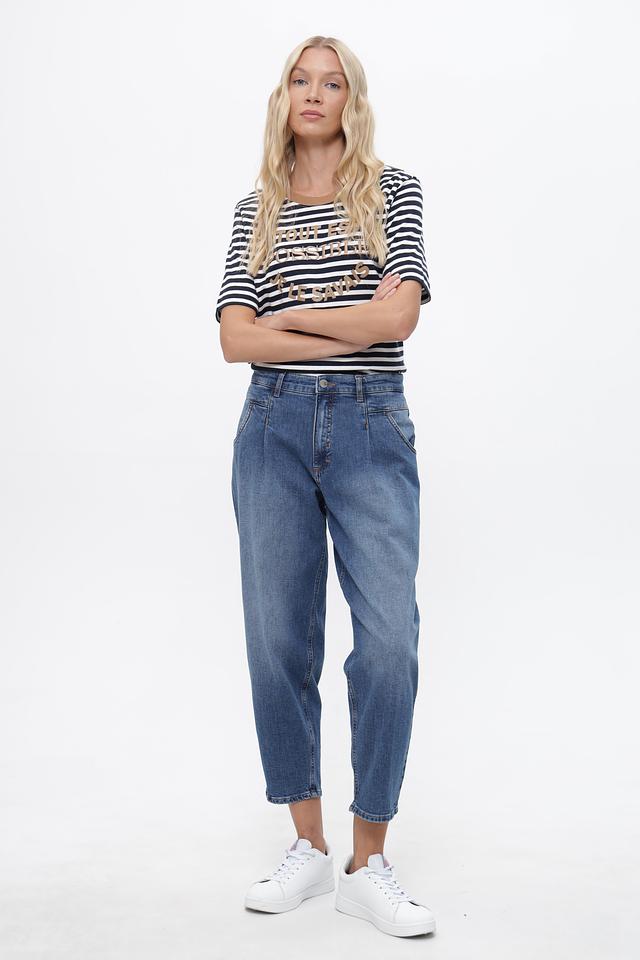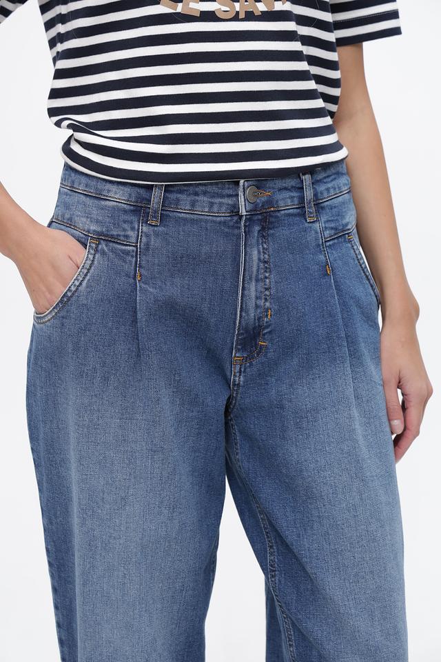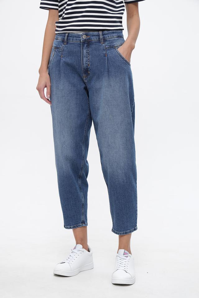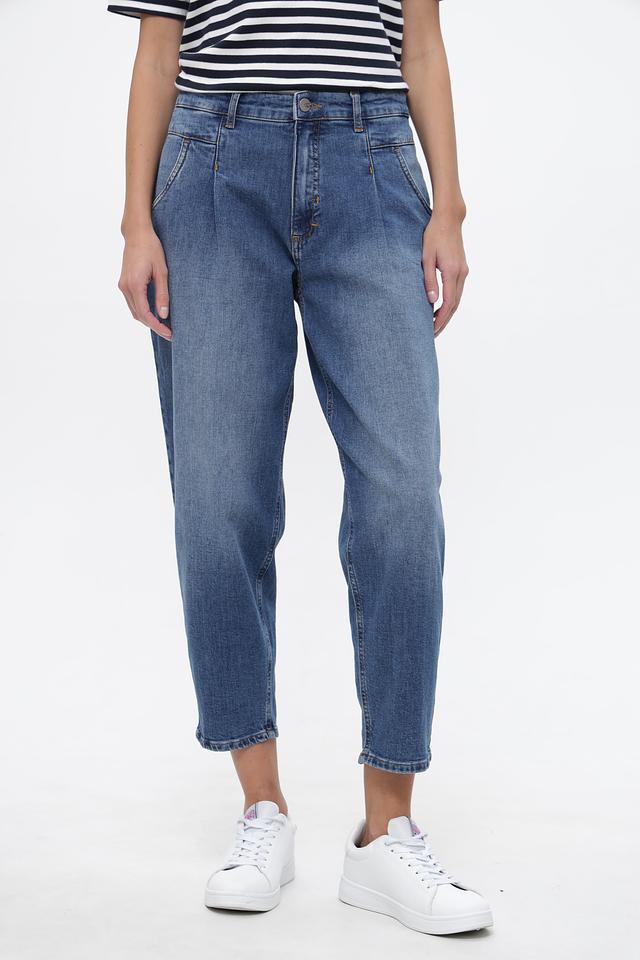 Джинсы характеризуются завышенной талией и наличием защипов, что придает им особенный стиль. Укороченный крой идеально подходит для создания модных образов с кедами или ботинками.
