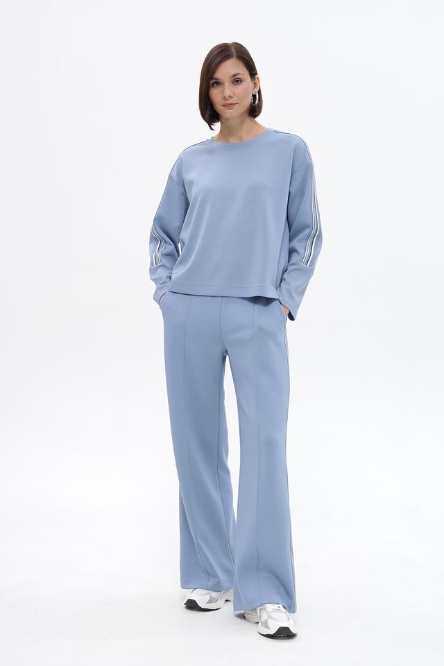 Голубые спортивные брюки Lecomte с полосками по бокам. Изготовлены из вискозы с добавлением полиэстера и эластана, обеспечивающих комфорт и свободу движений. Идеальный выбор для активного образа жизни. Состав: вискоза 55%, полиэстер 40%, эластан 5%