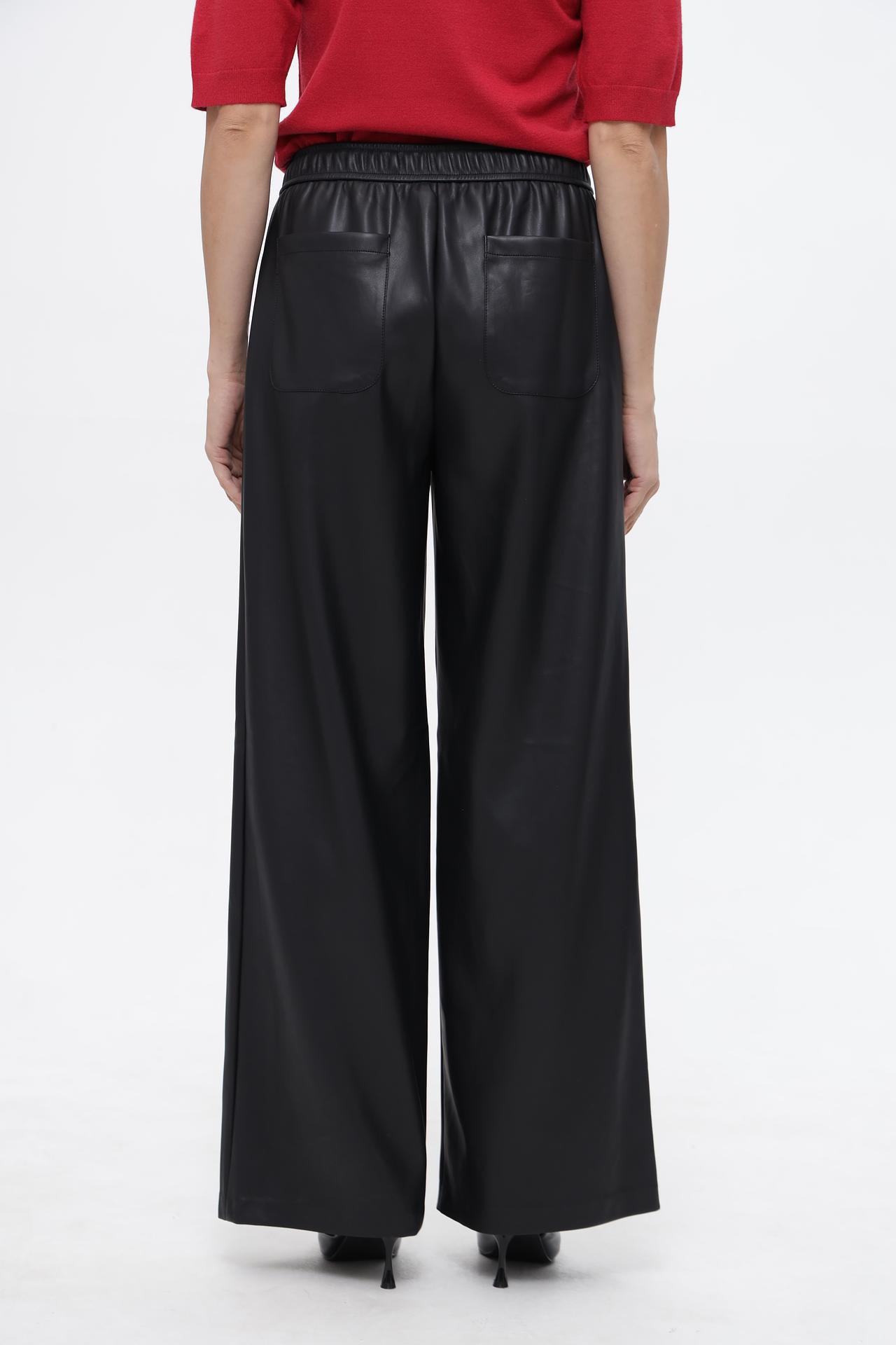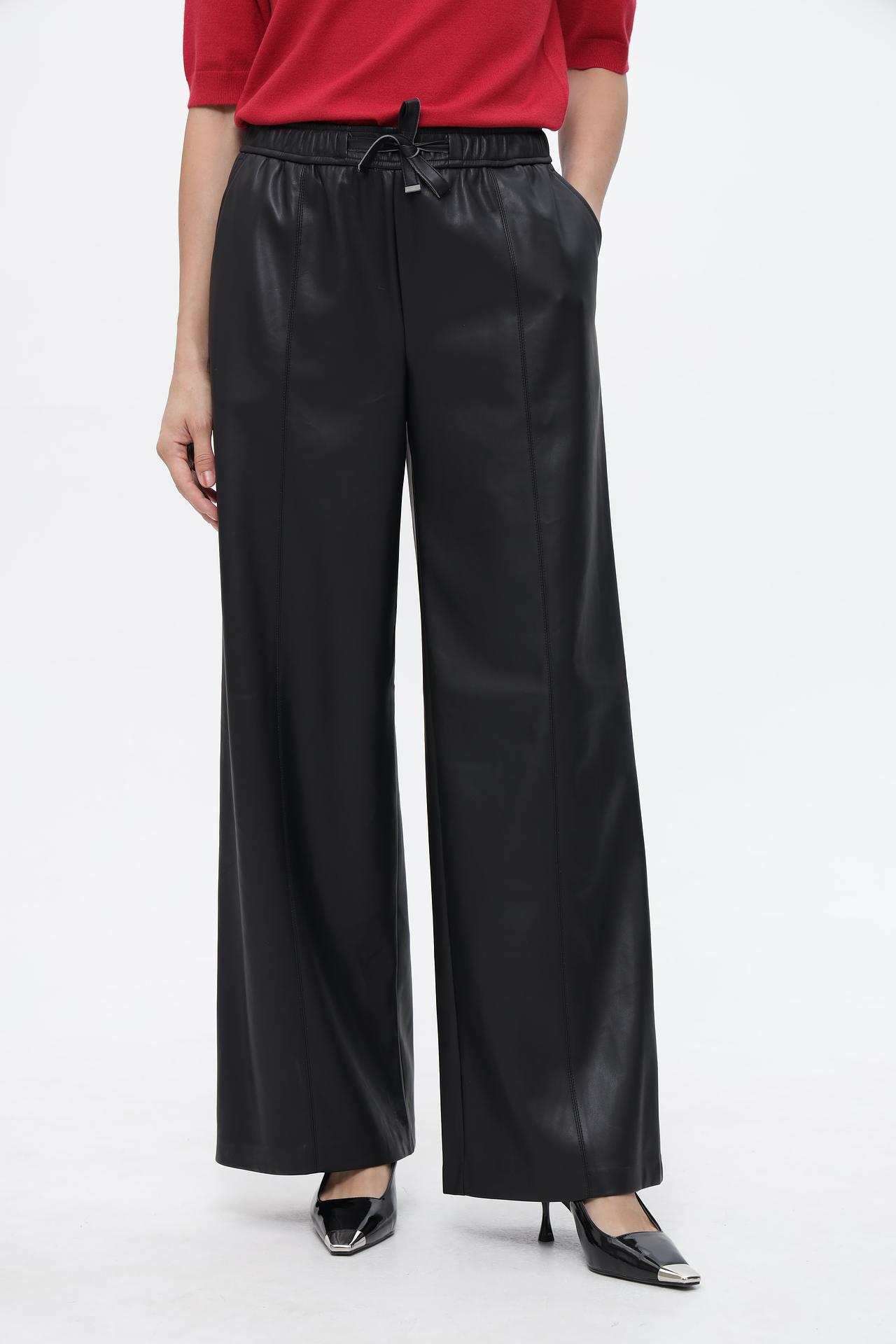Стильные брюки палаццо от Lecomte - идеальный выбор для создания эффектных образов. Модель выполнена из полиэстера со специальным полиуретановым покрытием, имитирующим кожу, что придает изделию особый шарм и элегантность. Универсальный черный цвет позволит легко сочетать брюки с различными элементами гардероба, создавая как повседневные, так и более нарядные луки. Актуальный крой палаццо обеспечивает комфорт и свободу движений, делая эту модель незаменимой в вашем гардеробе.