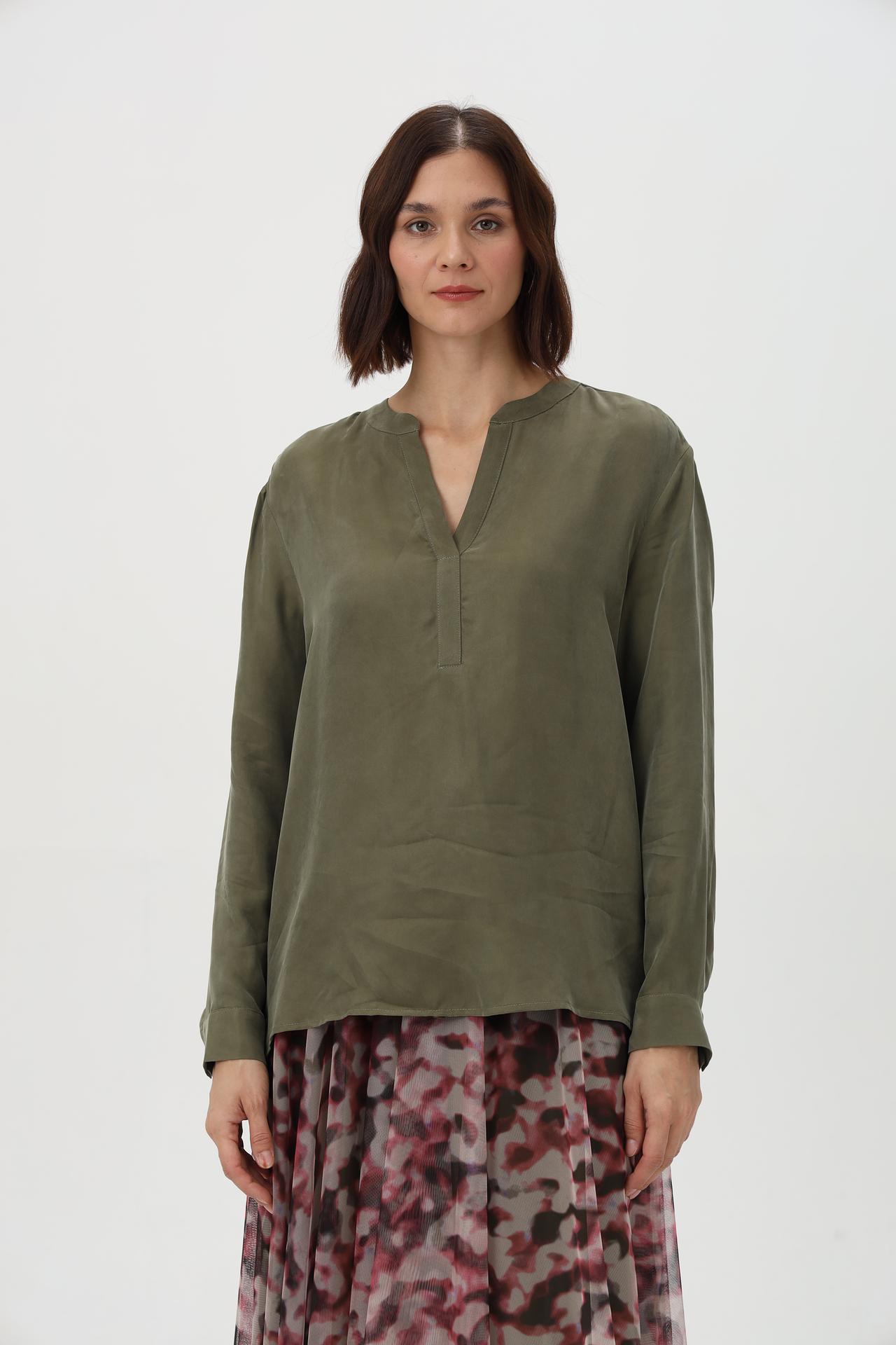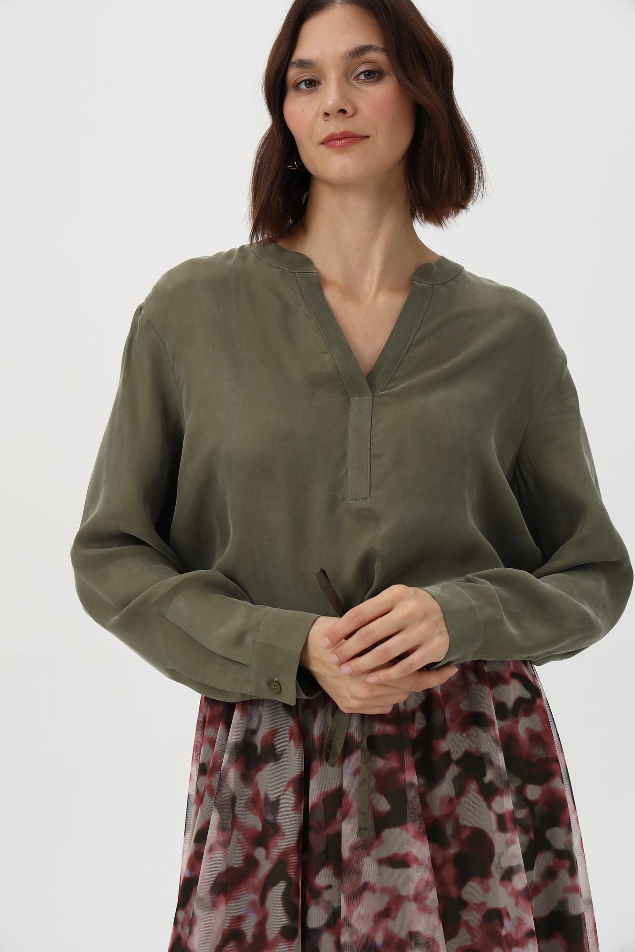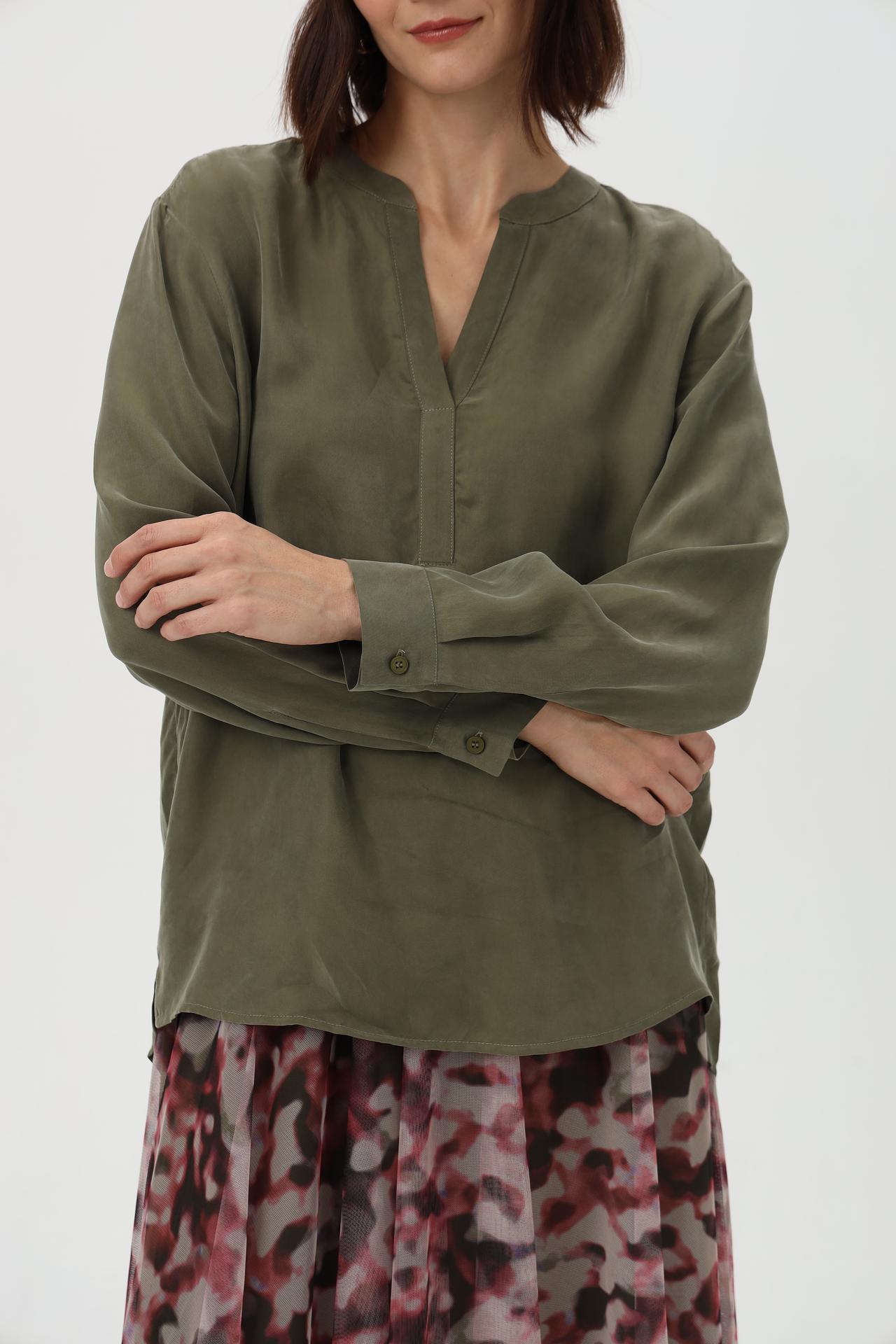 Элегантная блуза Lecomte станет незаменимой частью вашего гардероба, сочетая в себе классический стиль и современный комфорт. Изделие выполнено из качественного материала, что обеспечивает приятные тактильные ощущения и отличную воздухопроницаемость. Универсальный хаки цвет позволяет легко комбинировать блузу с различными предметами одежды, создавая элегантные образы для любого случая. Модель с V-образным вырезом и длинными рукавами идеально подходит для создания утонченных и женственных образов.