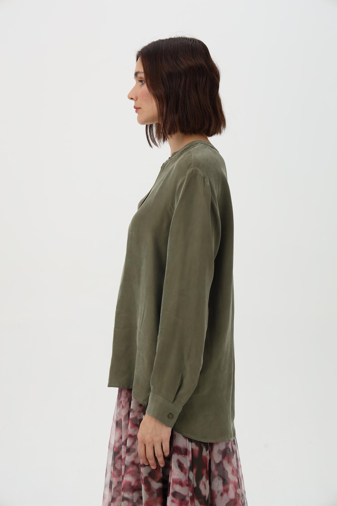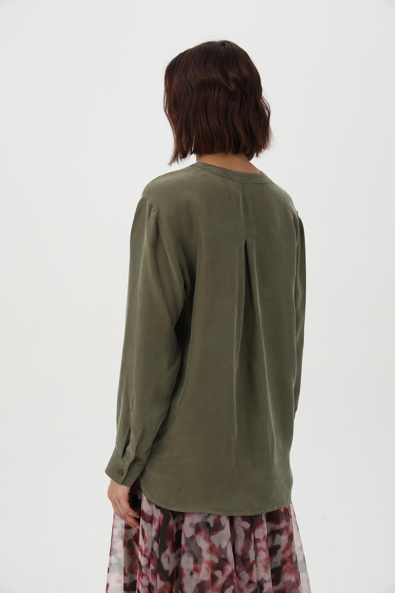 - Детали: Рубашечный воротник и длинные рукава с манжетами добавляют классические нотки в дизайн, делая блузу актуальной вне времени.