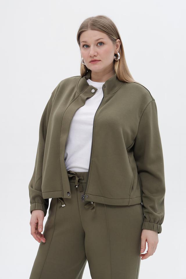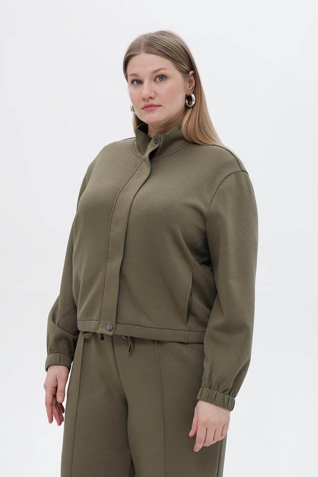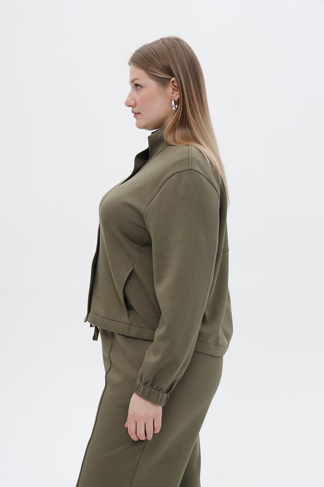 Воротник-стойка придает жакету современный вид, а манжеты на резинке обеспечивают плотное прилегание к запястьям. Жакет имеет длинные рукава и удобную длину.