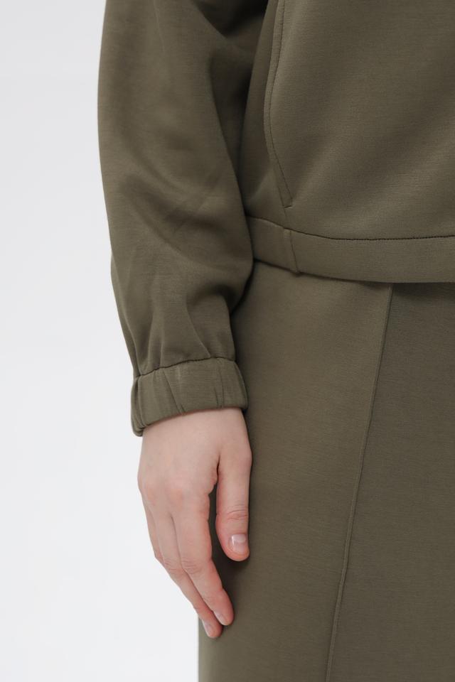Жакет от Lecomte выполнен из мягкой и приятной к телу ткани, состоящей из вискозы, полиэстера и эластана. Модель оливкового цвета имеет прямой крой и застегивается на молнию.