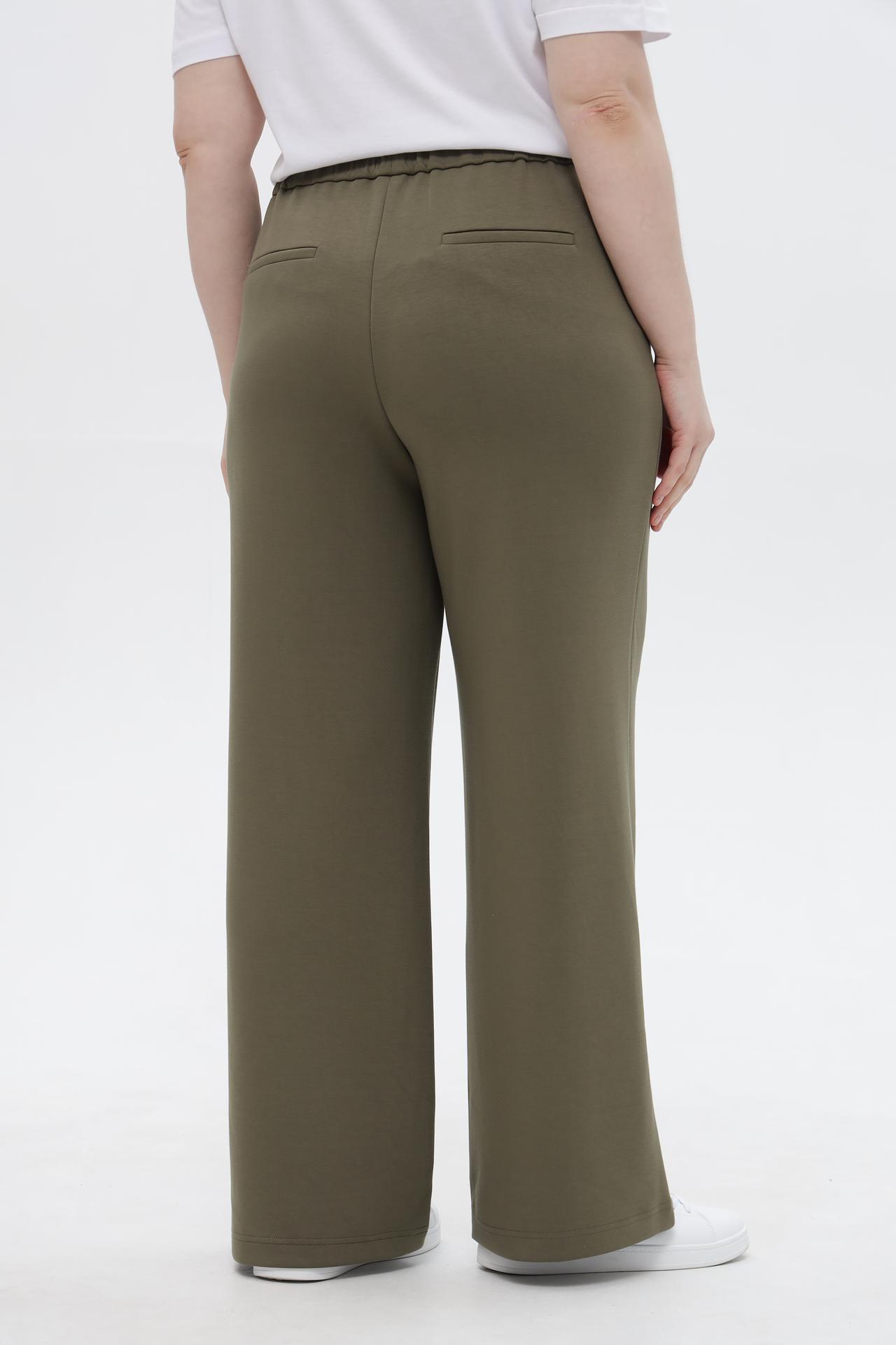 - Крой: Широкие брюки прямого силуэта со средней посадкой создают элегантный и современный вид, скрывая возможные недостатки фигуры.