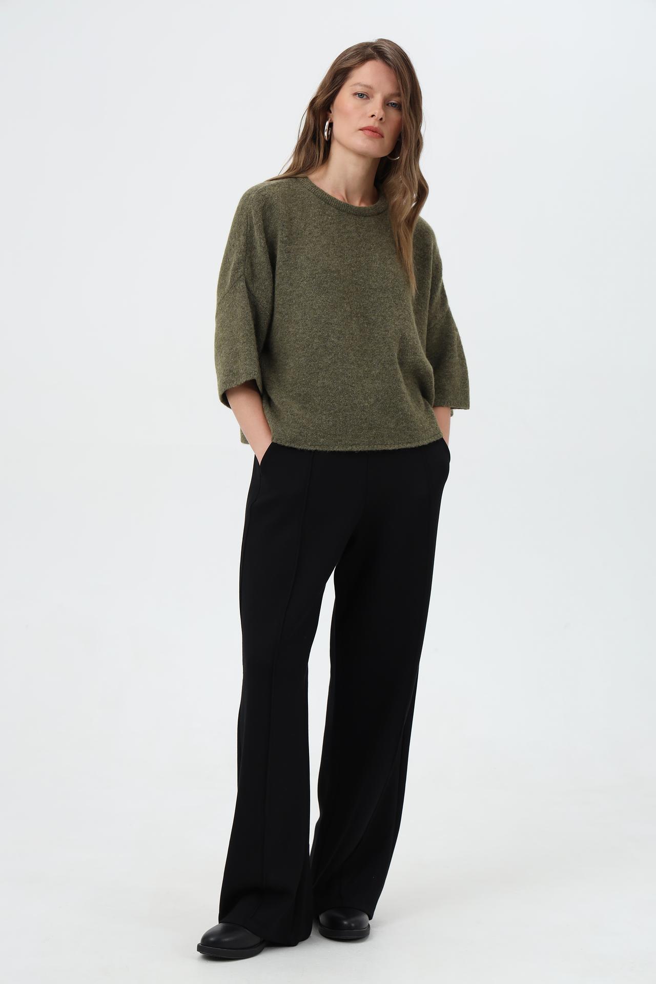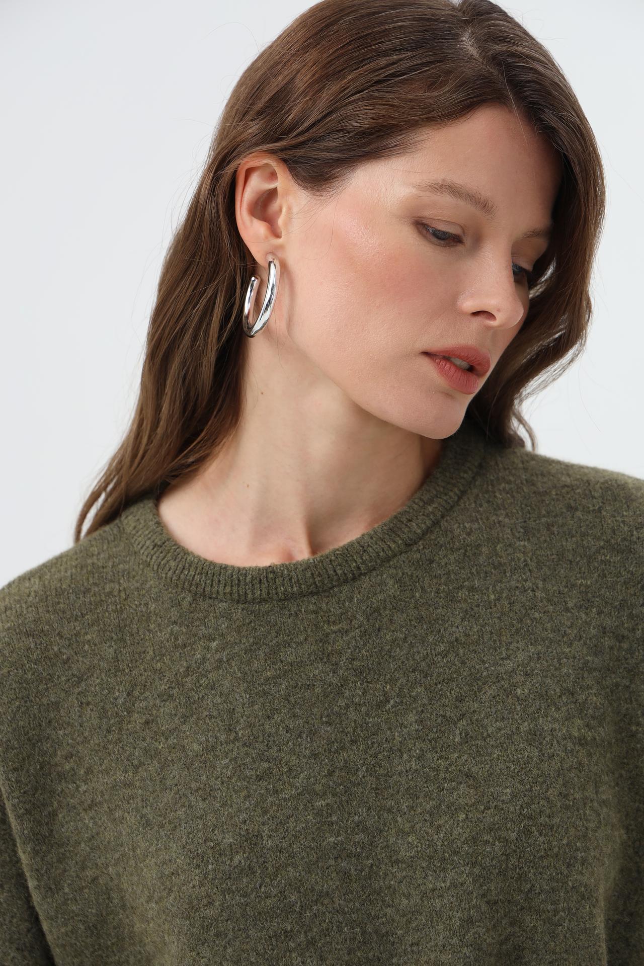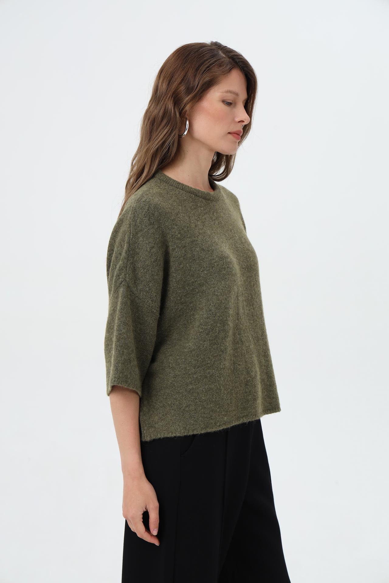 - Крой: Свободный силуэт и укороченные рукава создают современный и непринужденный вид. Пуловер отлично сочетается с брюками и юбками различной длины.