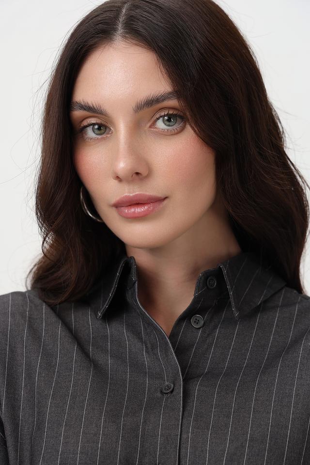 Эта элегантная блузка от Lecomte выполнена в сером цвете с классической вертикальной полоской. Она станет универсальным элементом вашего гардероба, подходящим для создания как деловых, так и повседневных образов.