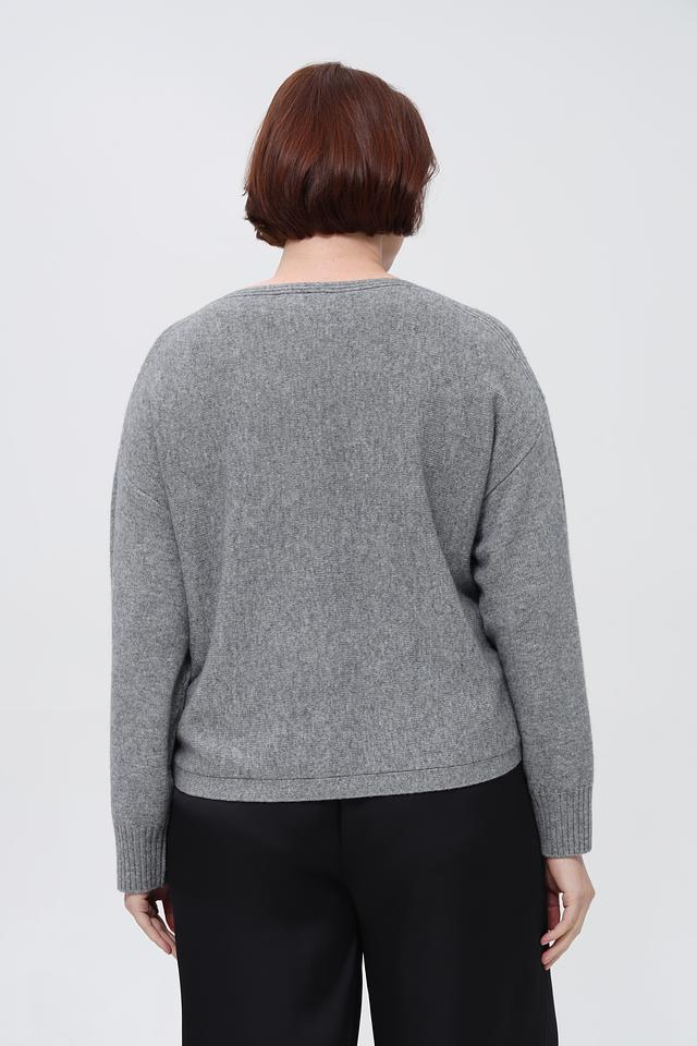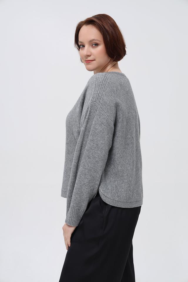 Пуловер имеет свободный крой, который обеспечивает комфорт при носке, а вырез горловины