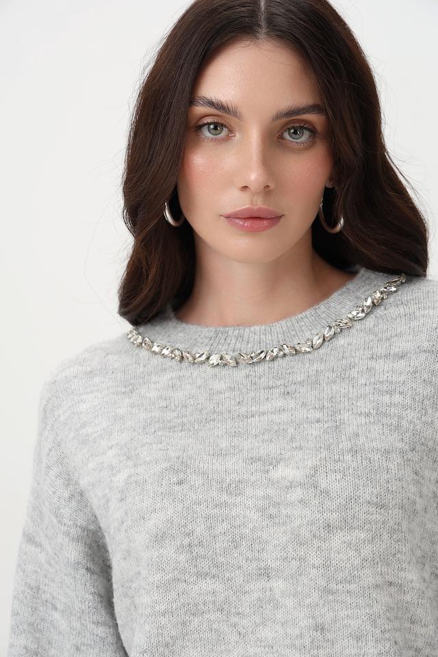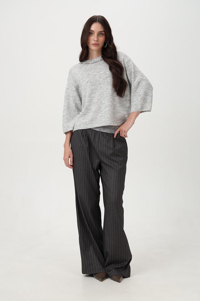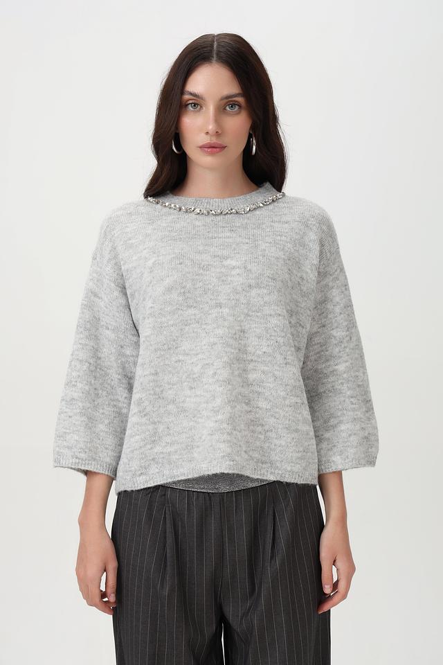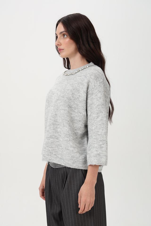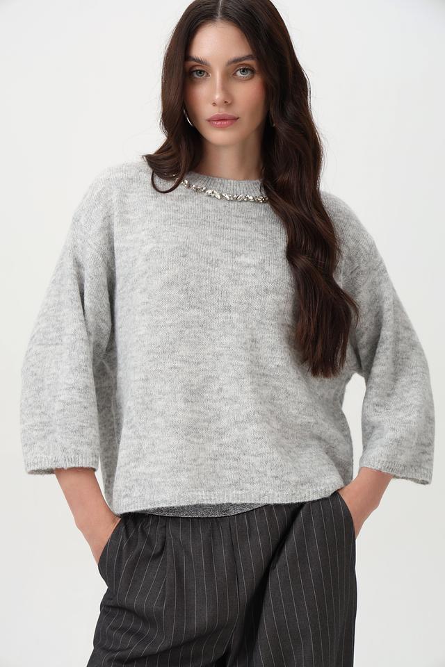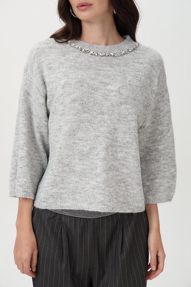 Стильный пуловер от Lecomte станет незаменимой вещью в холодное время года. Модель выполнена в сером цвете и имеет круглый вырез горловины, дополненный изящной декоративной цепью.
