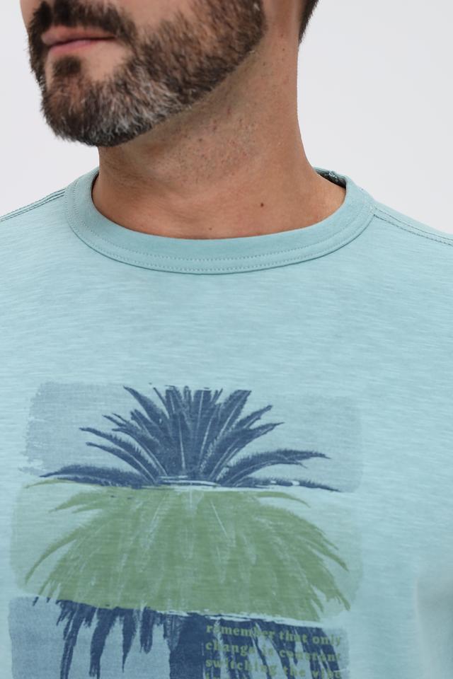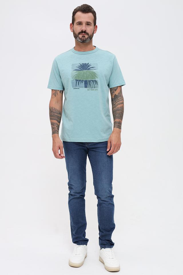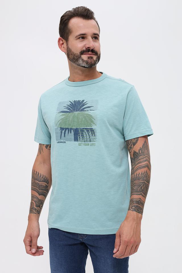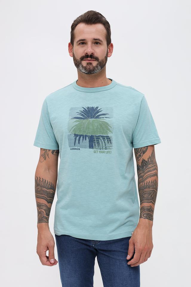 Мужская футболка Lerros мятного цвета с ярким принтом в виде пальм. Изготовлена из 100% хлопка, обеспечивающего комфорт и воздухопроницаемость. Стильный и удобный вариант для повседневной носки. Состав: хлопок 100%