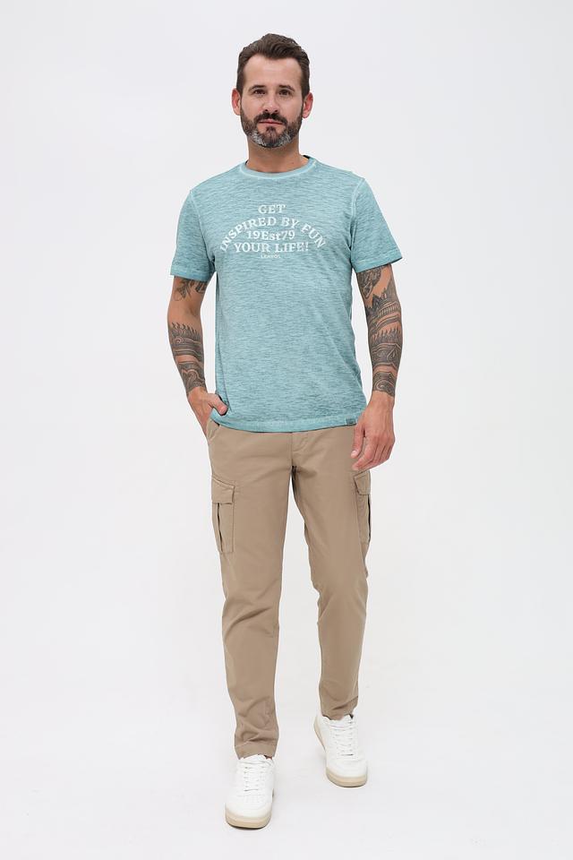 Мужская футболка Lerros мятного цвета с оригинальным принтом на лицевой стороне. Изготовлена из 100% хлопка, обеспечивающего комфорт и воздухопроницаемость. Стильный и удобный вариант для повседневной носки. Состав: хлопок 100%