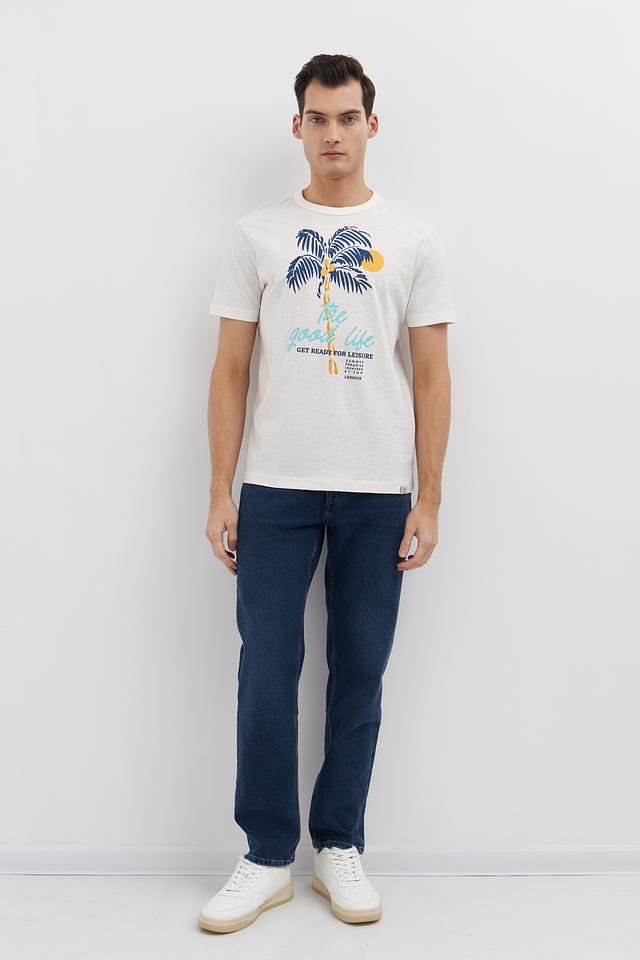 Мужская футболка Lerros – это стильное и удобное решение для повседневного гардероба. Футболка выполнена в белом цвете и украшена эффектным принтом с изображением пальм и солнца, что придает ей летнее настроение.