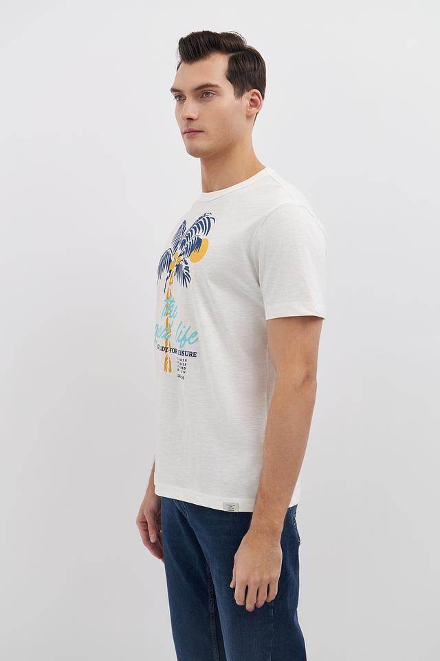 Мужская футболка Lerros белого цвета с ярким тропическим принтом. Изготовлена из 100% хлопка, обеспечивающего комфорт и воздухопроницаемость. Состав: хлопок 100%