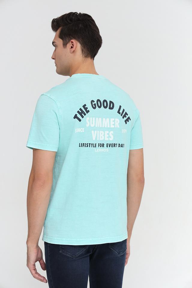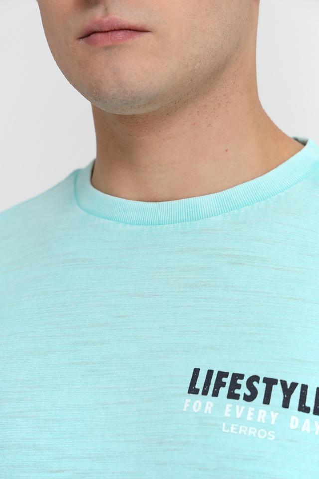 Футболка изготовлена из высококачественного 100% хлопка, что делает ее приятной на ощупь и позволяет коже дышать. На передней части футболки расположен стильный принт с надписью "LIFESTYLE", а на спине – яркий слоган "THE GOOD LIFE SUMMER VIBES" и логотип Lerros.