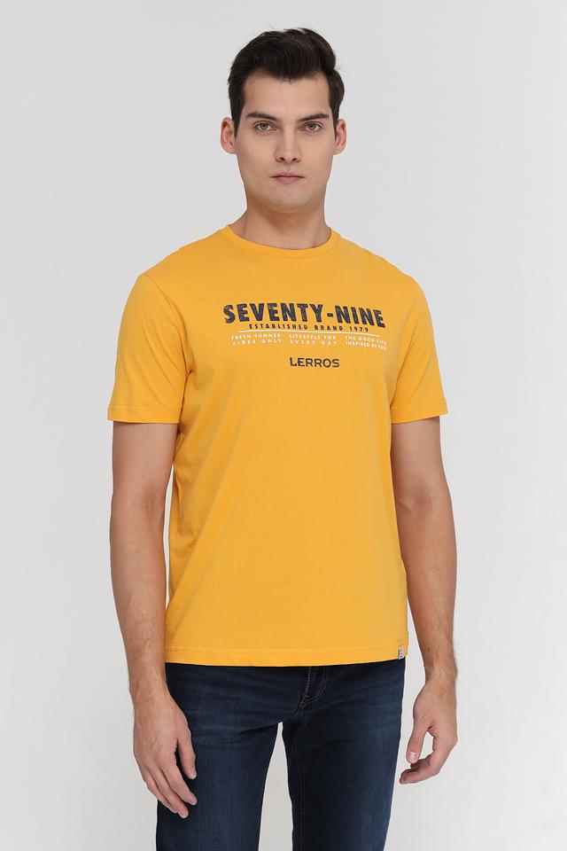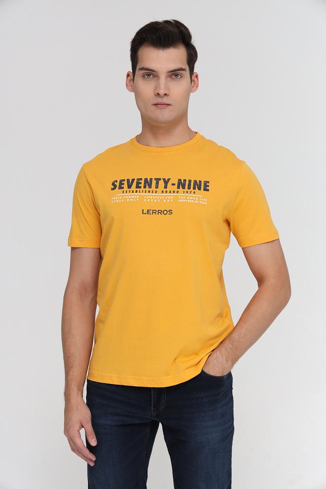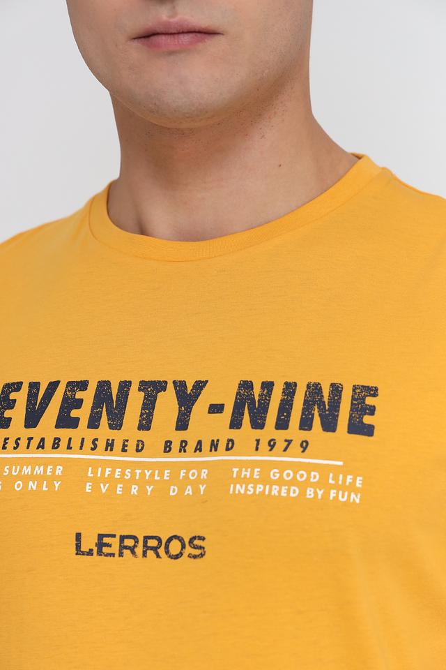 Представляем мужскую футболку от бренда Lerros. Эта футболка выполнена в горчичном цвете и станет отличным дополнением к вашему гардеробу.