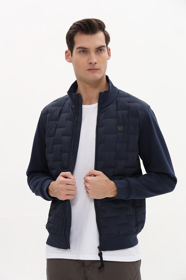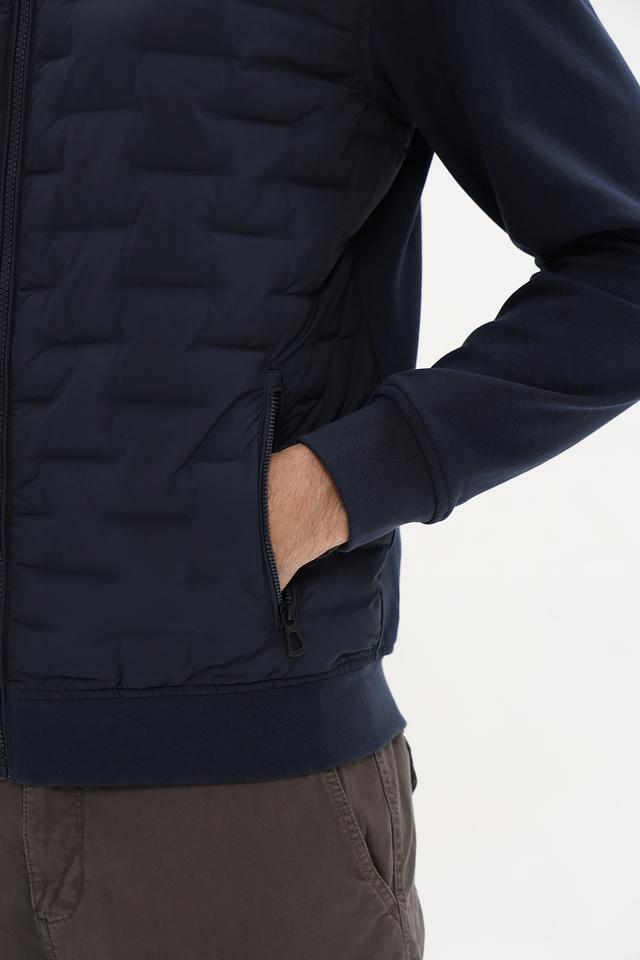Мужской кардиган Lerros – это практичное и стильное решение для создания комфортного образа. Модель выполнена в насыщенном синем цвете и сочетает в себе элементы стеганой куртки и классического кардигана.