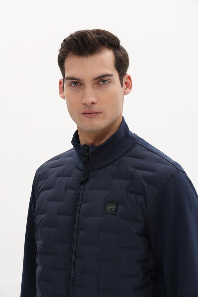 Стильный мужской кардиган Lerros синего цвета с комбинированным дизайном. Модель выполнена из хлопка с добавлением полиэстера, имеет стеганую лицевую часть и гладкие рукава. Состав: хлопок 80%, полиэстер 20%